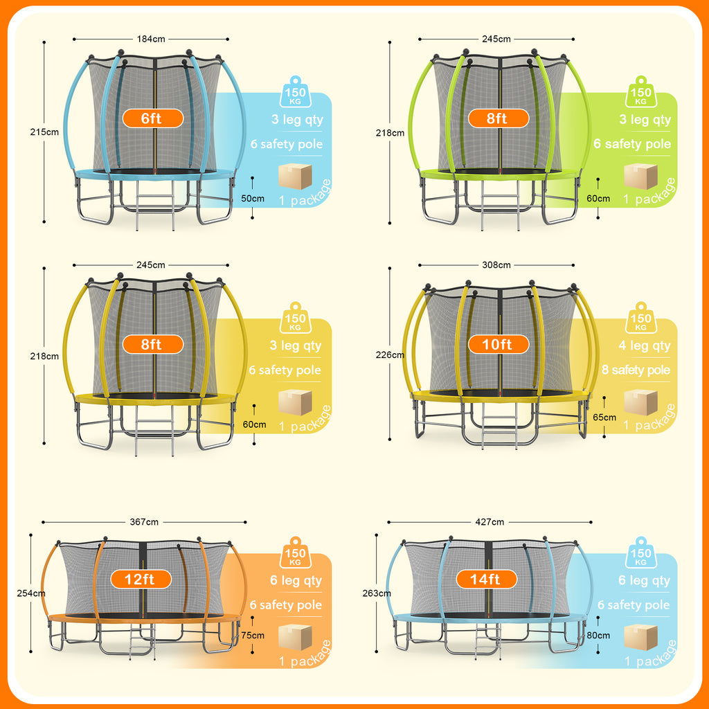 • 14FT Trampoline For the Whole Family: The large 14FT trampoline is designed to accommodate many children playing together, with a weight capacity of up to 150kg. It’s safe enough for parents to join in, making it an ideal piece of equipment for family fun.