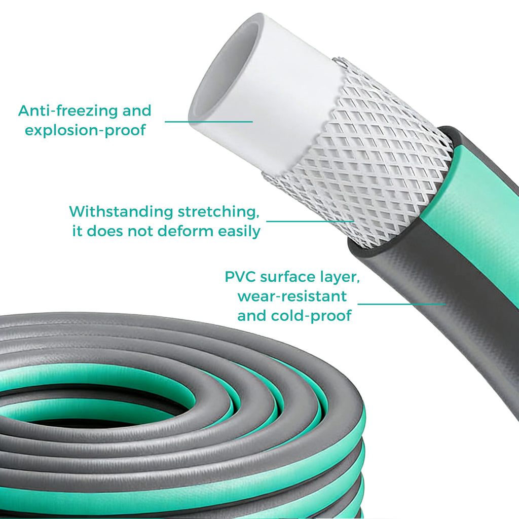 Durable Construction: The hose reel casing and bracket are made of high-quality UV-resistant PP material, capable of withstanding harsh weather. The thickened PVC hose design prevents cracking and twisting. And wall-mounted design saves space in your garage, yard, or utility area.