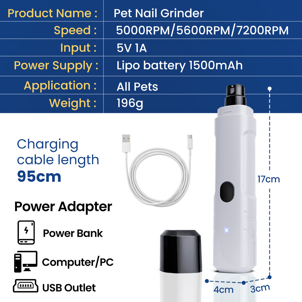 - Super Low Noise & Vibration: Many pets get stressed by the sound and vibration of pet nail grinder. However, our electric pet nail grinder uses a superior motor with super-quiet technology that produces a very low vibration. It will not scare your pets. Help you trim like a Pro.