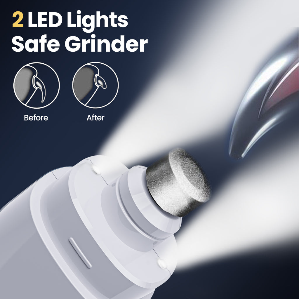 - Say Goodbye to Over-clip: Over-clipping is the worst during nail trimming. Dual LED lights on electric dog nail trimmer will help you prevent it. The lights let you see the nail quick easier, making the grinding safer and more precise.