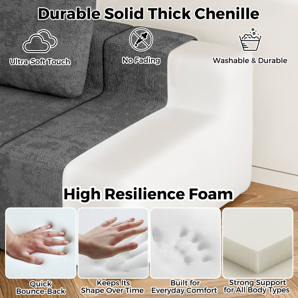 Luxury Chenille Fabric: Crafted with premium soft chenille fabric, this sofa offers a plush, durable seating experience that resists pilling and fading. The compact and versatile small sofa with its simple armless design is perfect for creating a relaxing atmosphere.