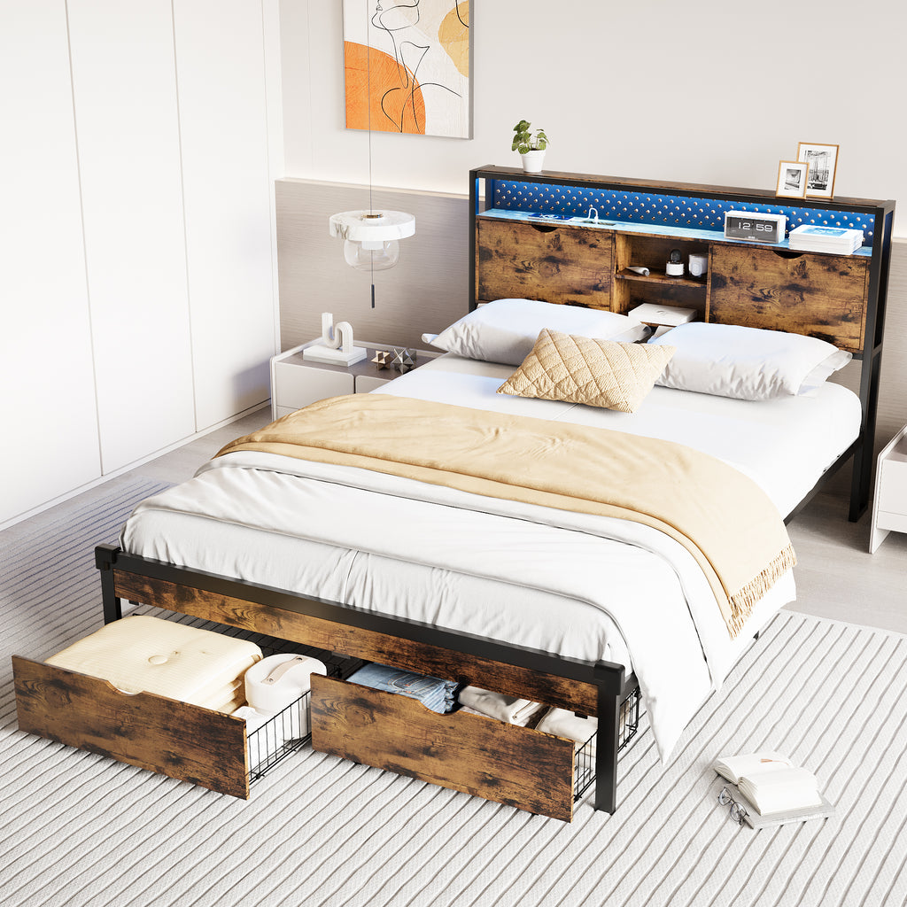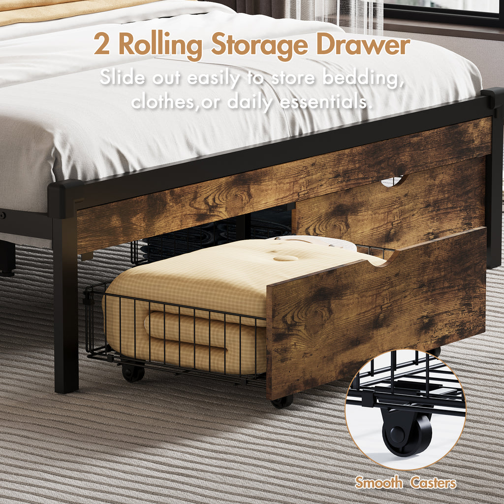 In addition, 2 large drawers under the bed with wheels, the bed frame provides ample storage space for your bedroom and other household essentials.