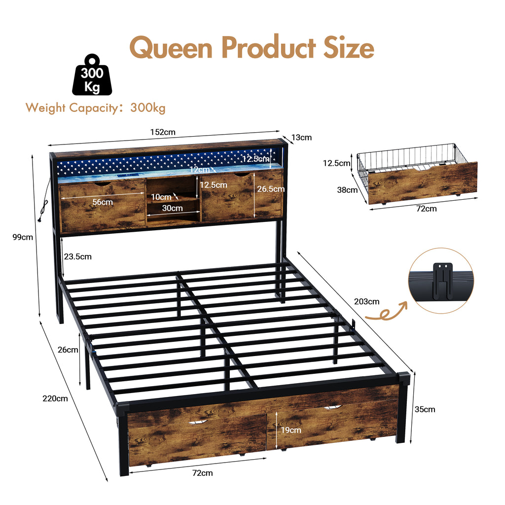 The bed frame is constructed from a sturdy all-metal frame that provides exceptional durability and stability. It can bear a weight of 300 kg. The mattress base is designed to fit standard Australian mattresses and features a non-slip design to keep your mattress in place. No noise to ensure you have a peaceful night.