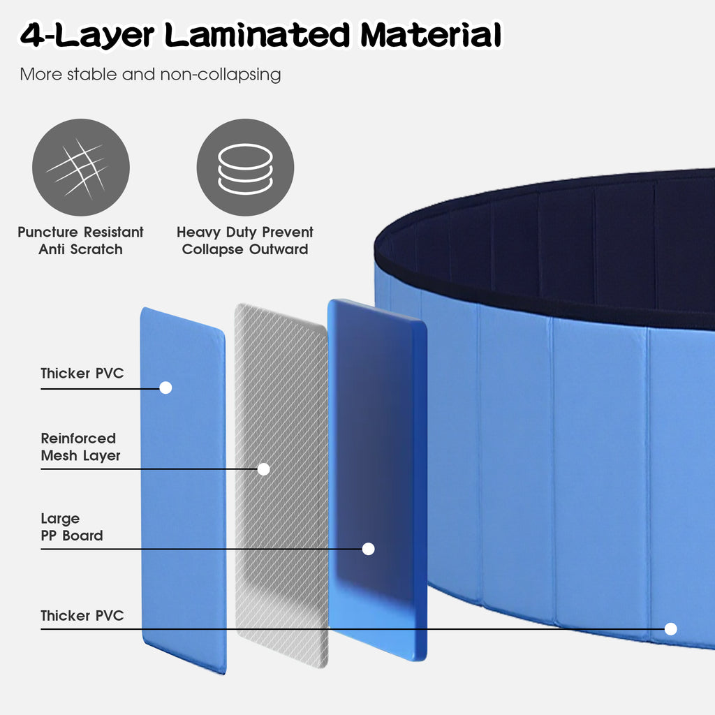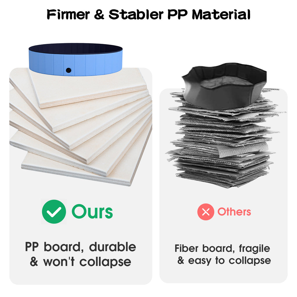 - Durable PVC Material: The pet pool is made of high-quality PVC, thick and high-strength pp board are built-in to support the whole pool stably without easy collapse. The anti-skid bottom can prevent your pets from slipping when they jump around in the bath pool.