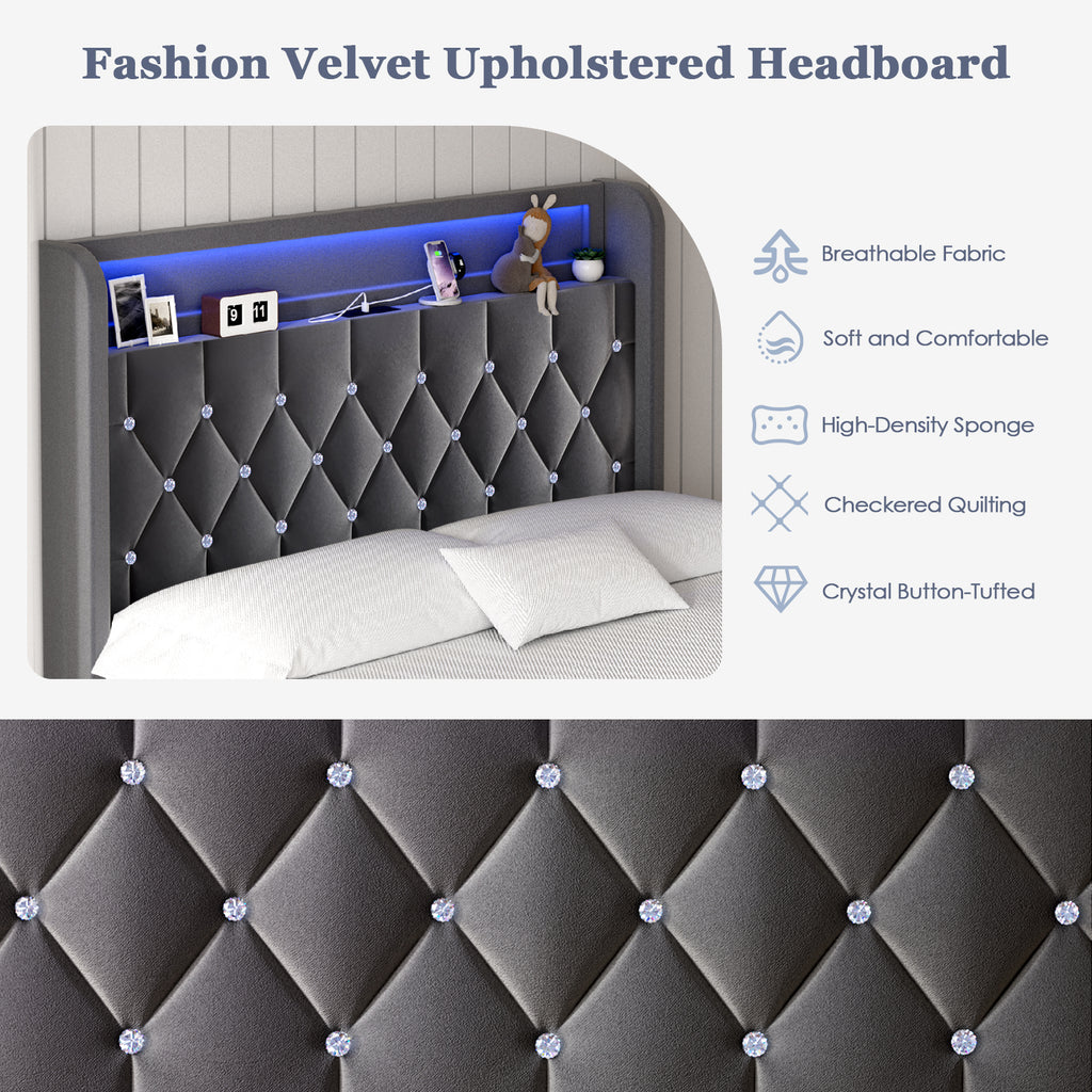 Advwin LED Bed Frame with Velvet Upholstered Headboard