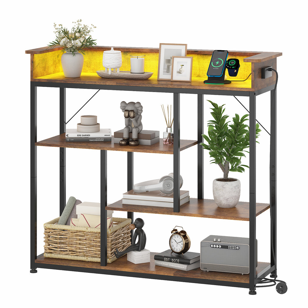 Built-In Charging Station & Customizable Led Lighting: Power your life with incredible convenience. This entryway table features 2 electrical outlets and 2 USB charging ports to keep your phones, tablets, and gaming devices fully charged. The integrated LED light strip offers 20 colors, 22 dynamic modes, and adjustable brightness/frequency, allowing you to set the perfect mood for any occasion.