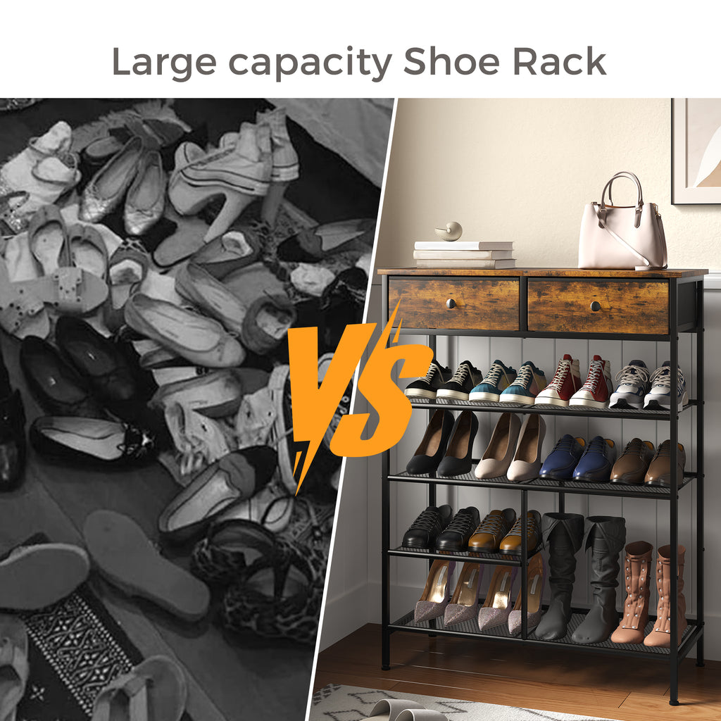 Shoe Rack with Drawers: This versatile shoe rack features two non-woven drawers, perfect for storing everyday essentials like keys, gloves, dog leashes, hats, and scarves. Keeping your entryway neat and organized is easy.