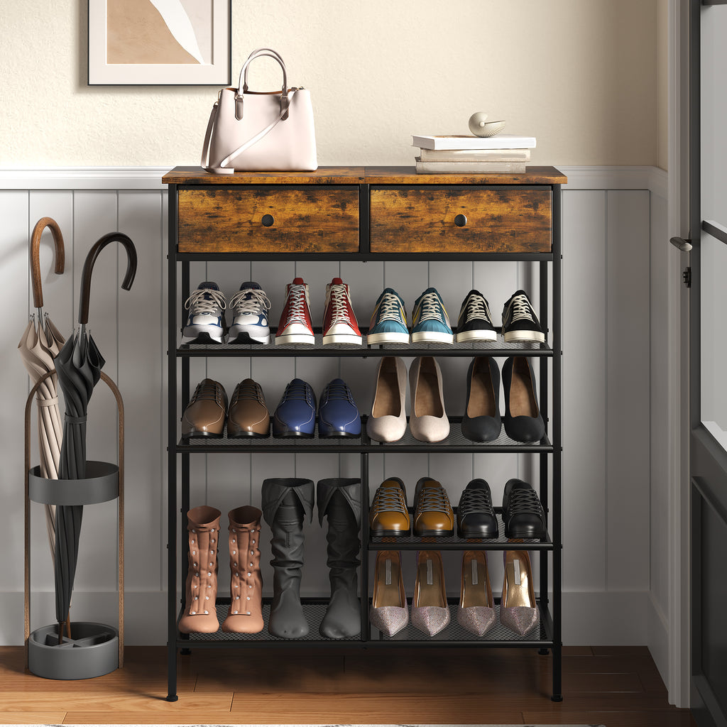 Effortless entryway organization: a four-tier shoe rack with drawers