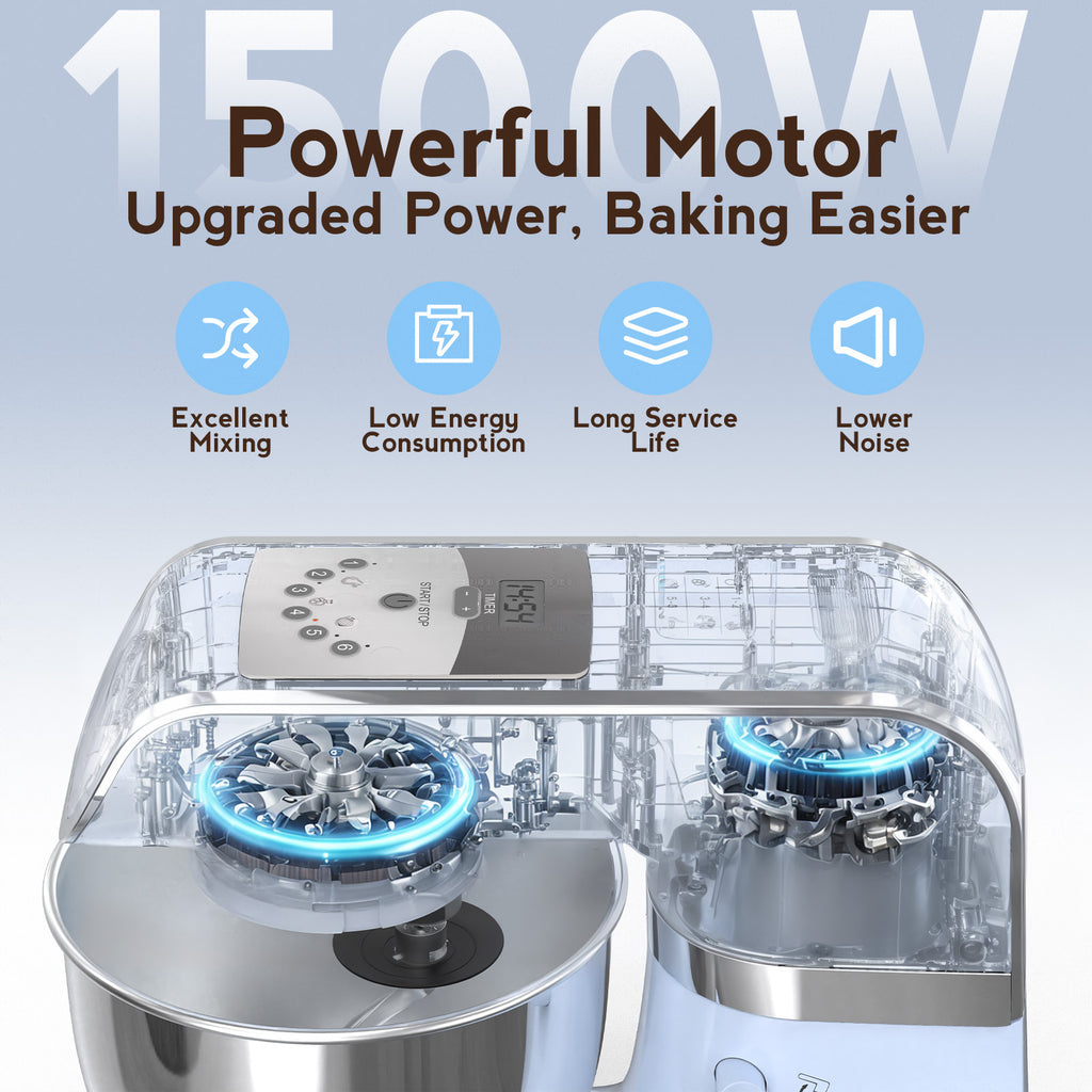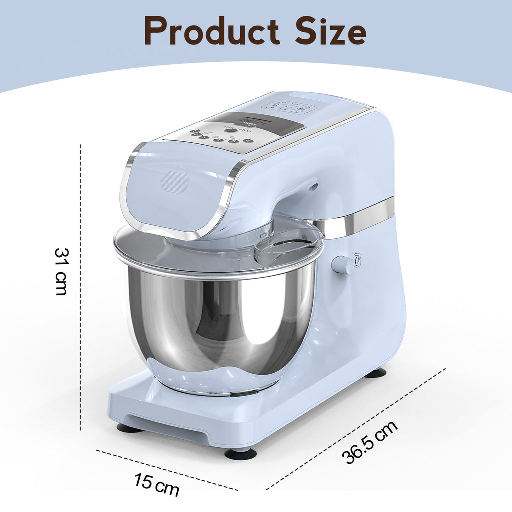 Bring smart convenience into your kitchen with this digital stand mixer. Designed for everyday home bakers, it features a clear LCD display, six adjustable speeds, and a built-in timer that gives you full control of your recipes. The planetary mixing system with Hall sensor technology delivers perfect consistency, whether you are kneading dough, beating eggs, or preparing cake batter.