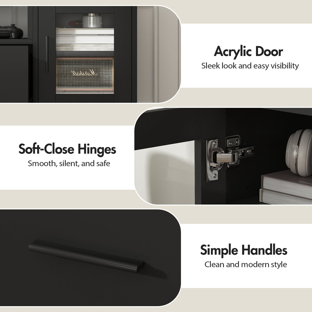 - Acrylic Doors: The left and right side cabinets feature clear acrylic doors, perfect for displaying your favourite collections, books, or ornaments while keeping them protected from dust.