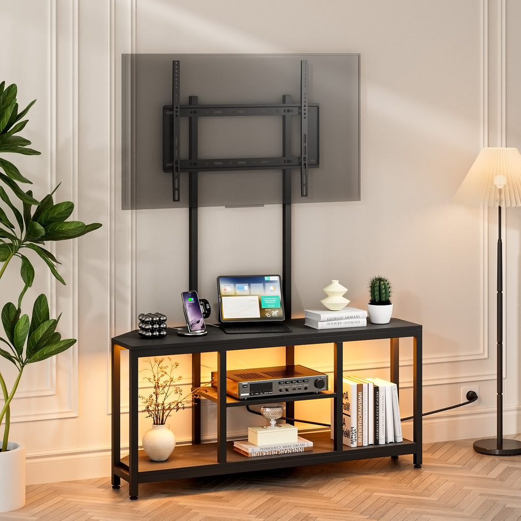 - All-In-One Built-In Tv Mount: This media console comes with an integrated TV mount, compatible with most 32” to 65” TVs. Fine-tune your TV’s height across three different settings for a truly customized and comfortable viewing experience.