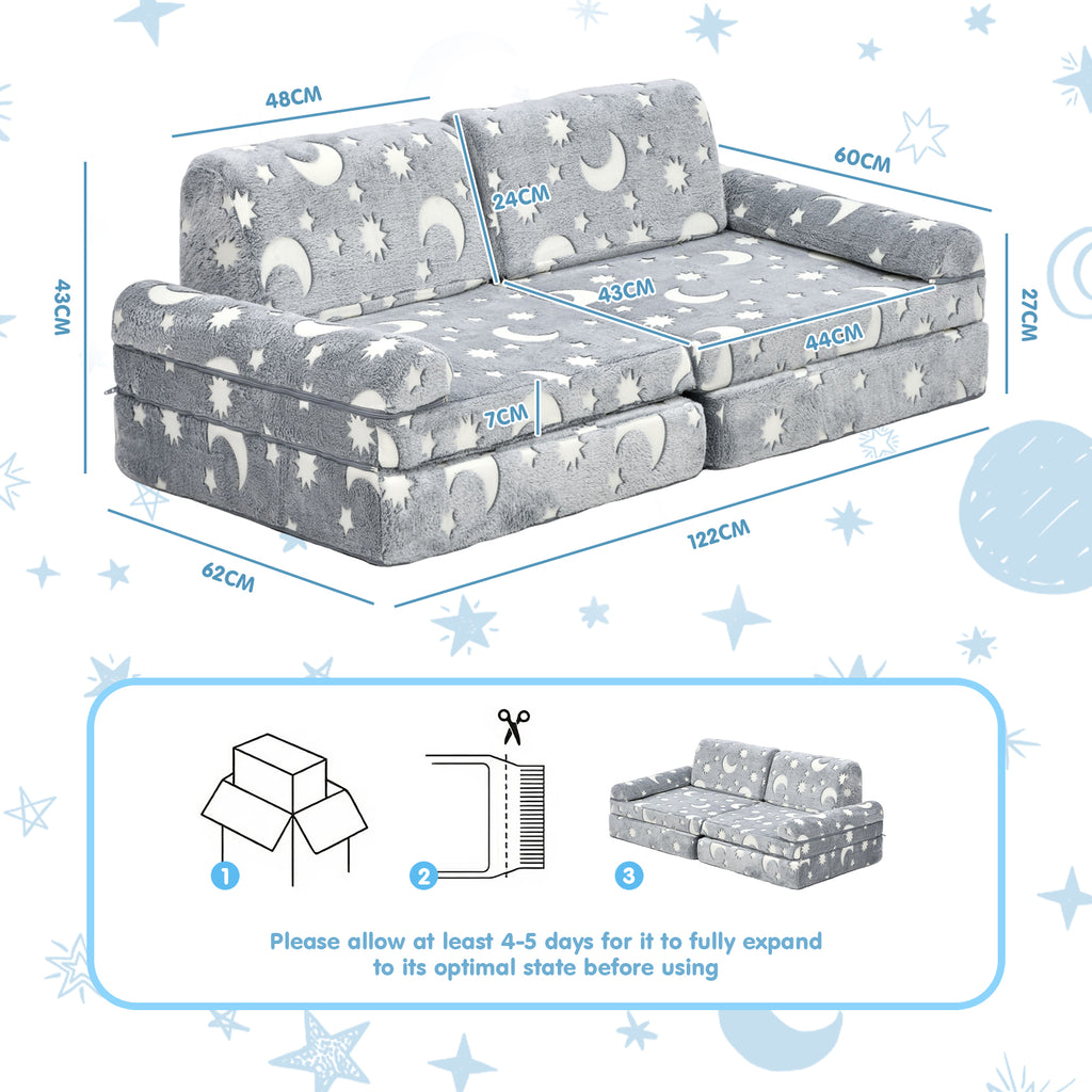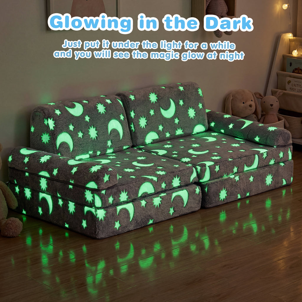 • Glow-Up Playtime: kid sofa features a nightlight design that absorbs light during the day and glows softly in the dark, turning playtime into a glowing, exciting adventure for kids.