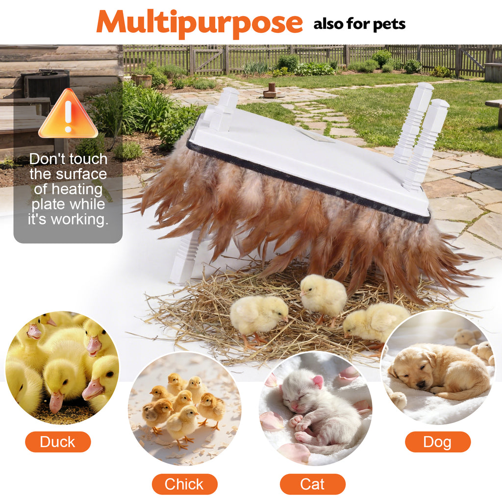 - Adjustable Height and Angle for Growing Chicks: Heat plate for chicks has a unique snap and leg design that allows the heating plate to be presented at different heights (total length 22.5 cm) and angles to meet the needs of chicks of different sizes. Perfect for chicks from hatching to fully feathered stages!