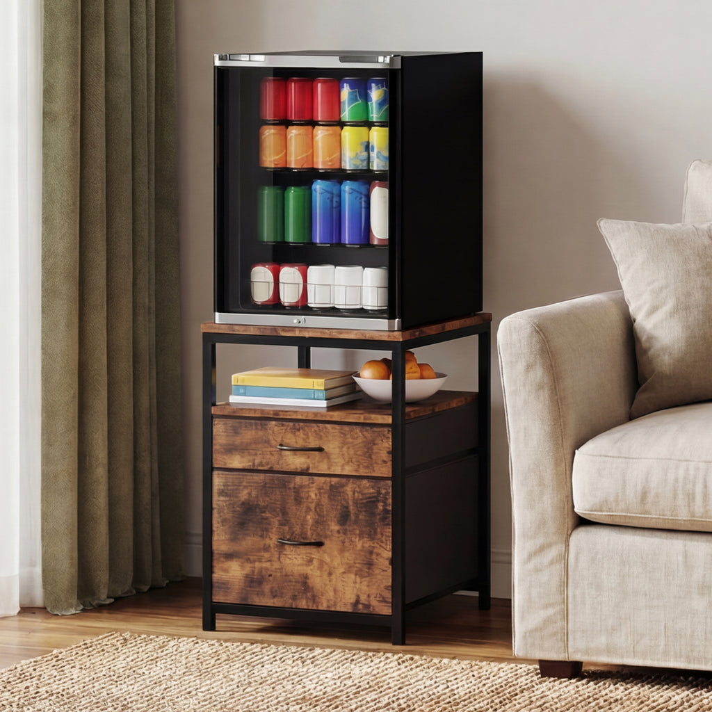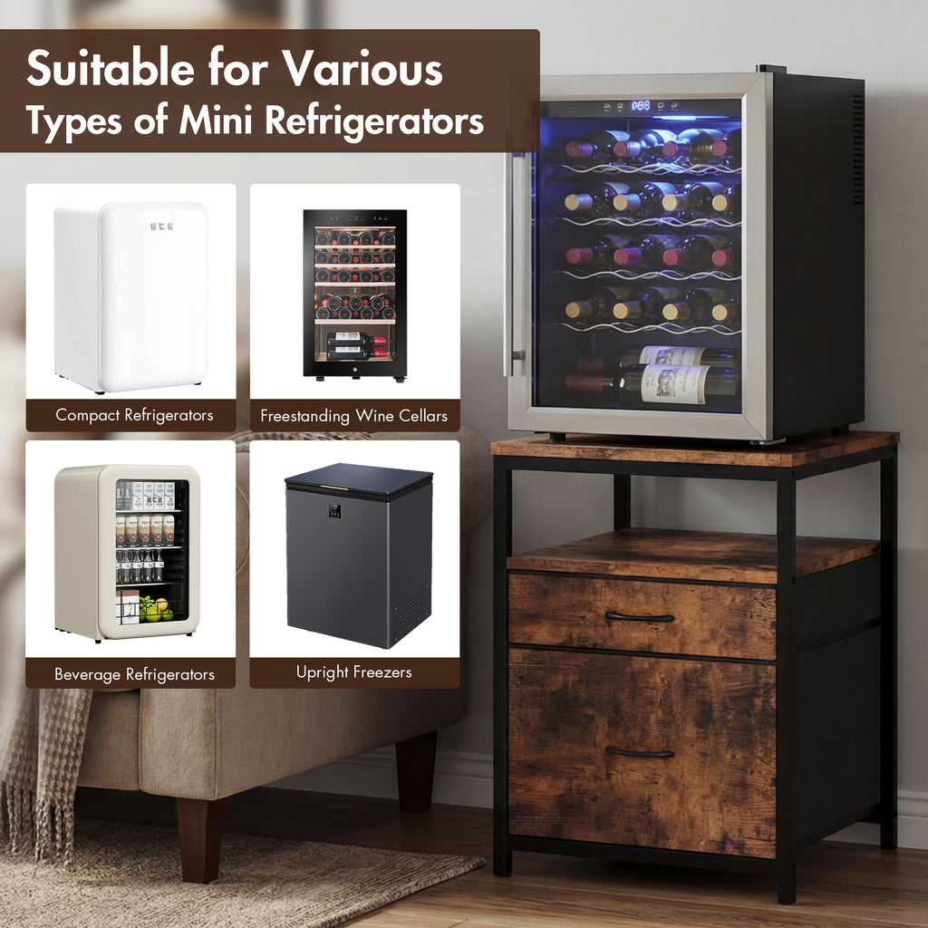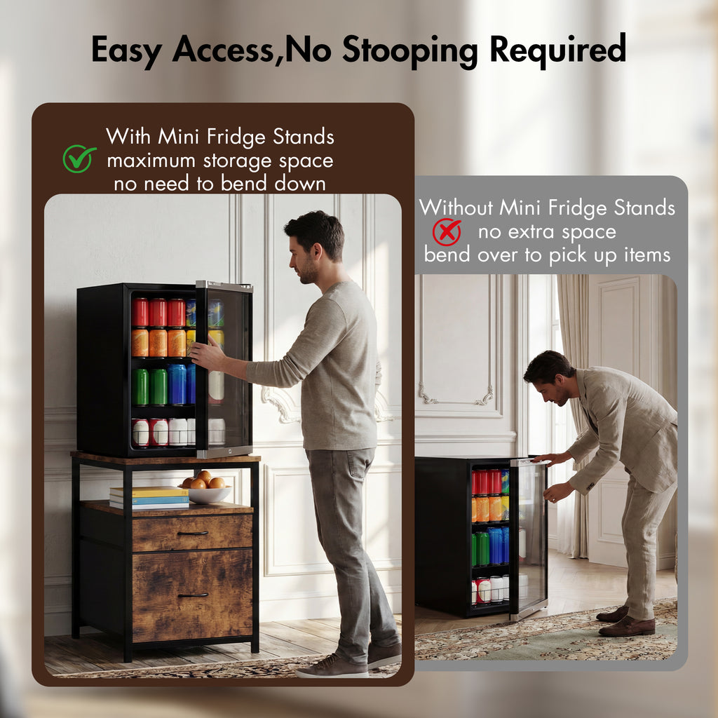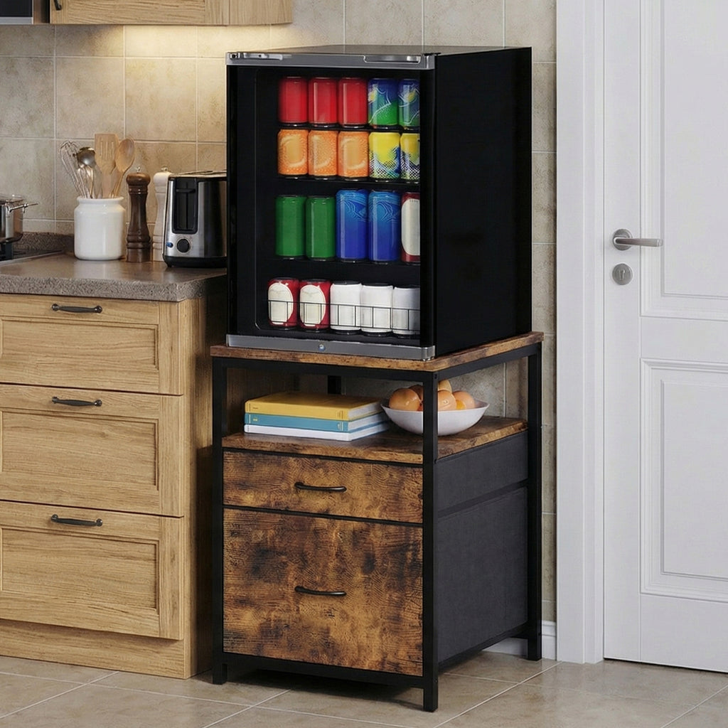 Tired of bending down every time you grab a drink or snack from your fridge? This mini fridge stand is designed to raise your refrigerator to a more comfortable height, making everyday access easier on your back and knees while improving overall convenience. By lifting your fridge off the floor, it also helps create a cleaner, more organised space around your kitchen or living area. Built-in storage drawers and an open shelf provide practical room for snacks, beverages, cookware and daily essentials that often end up cluttering the floor or countertop, keeping everything neatly arranged and within easy reach. More than just a fridge stand, this versatile storage rack can also be used as a microwave stand, snack shelf or compact side table, making it ideal for kitchens, apartments, bedrooms, living rooms or offices where space is limited. Its sturdy construction offers reliable support for everyday use, giving you confidence when placing appliances and stored items on it. With a straightforward assembly process and included instructions, you can quickly upgrade your space and enjoy a more comfortable, organised home without extra effort.