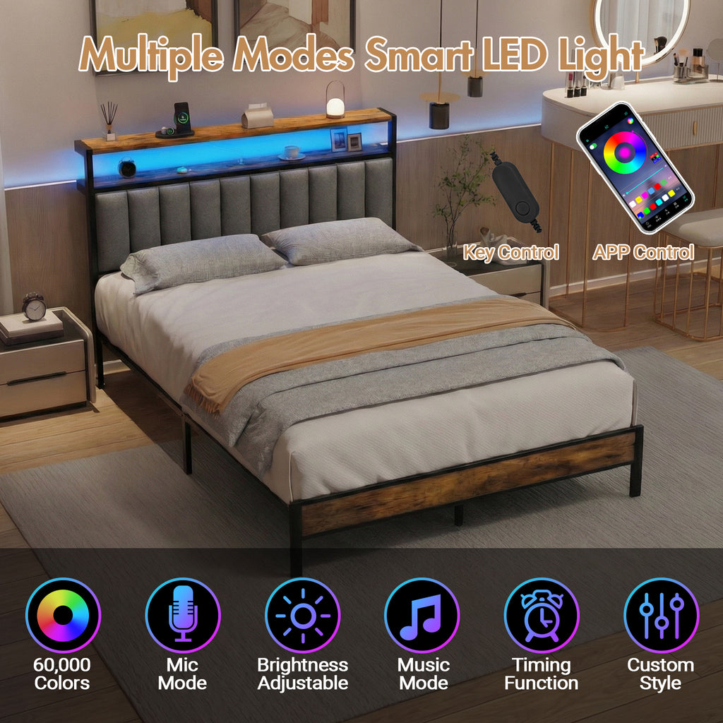 - RGB LED Bed Frame: The headboard of the bed frame is equipped with LED light strips, which can be easily switched in color through wired buttons and APP control, adding bright colors and a romantic atmosphere to your bedroom.