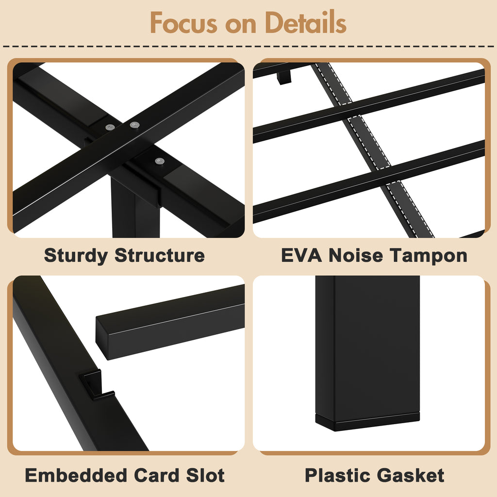 - Strong Construction & Noise-Free: The bed frame features a durable all-metal construction with robust metal legs, offering a maximum load capacity of 300 kg. Reinforced metal connectors ensure enhanced structural stability. EVA foam strips between slats prevent squeaking. It ensures that you have a quiet night.