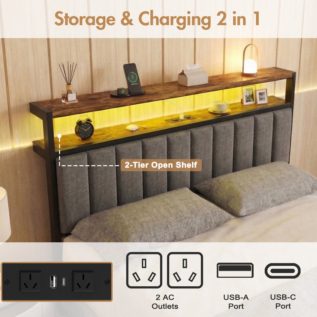 - Headboard with Charging Station: Say goodbye to low battery anxiety! Charging bed frame, 2 standard outlets, 1USB and 1 Type-C ports. Storage headboards allow you to easily charge your tablet, phone, and other mobile devices.