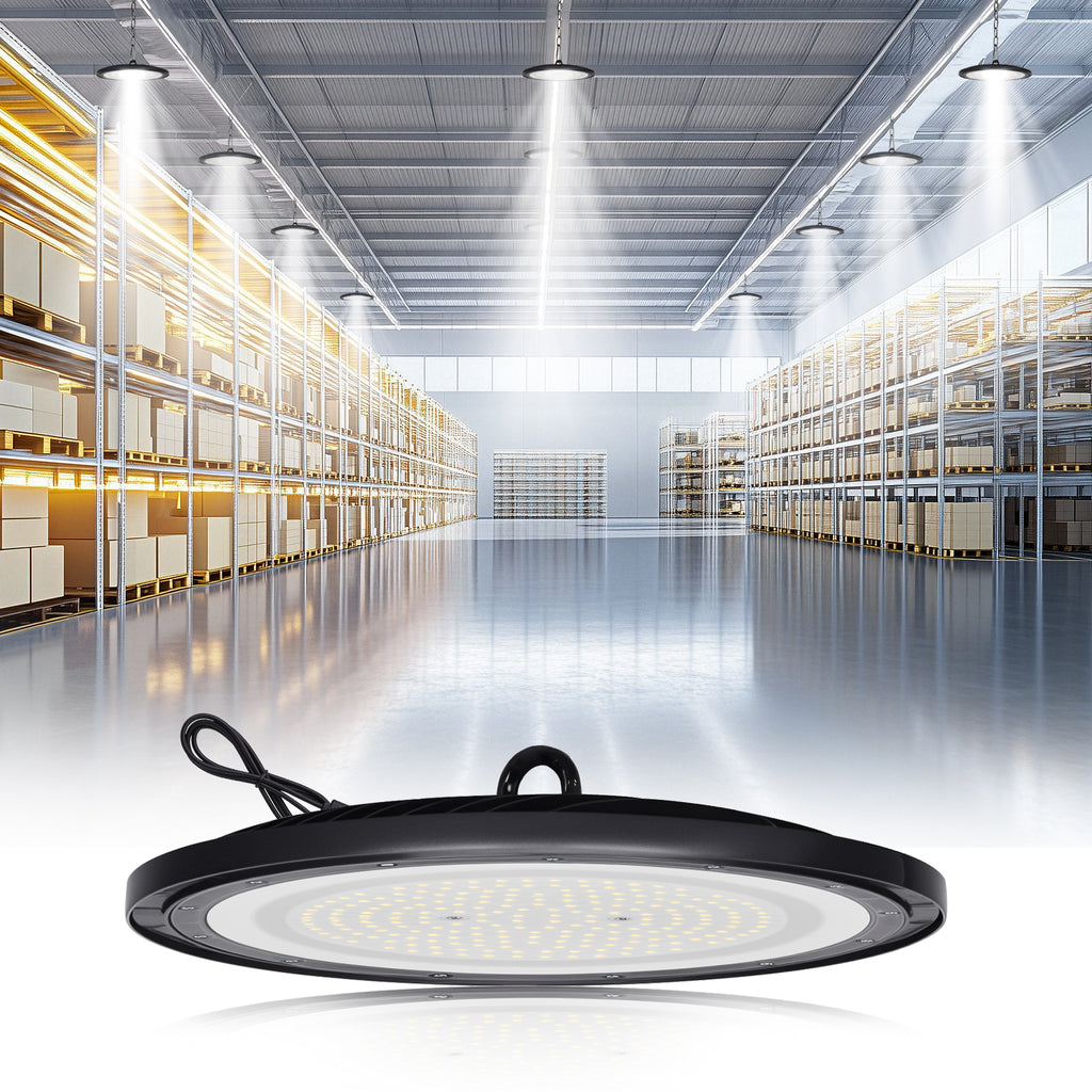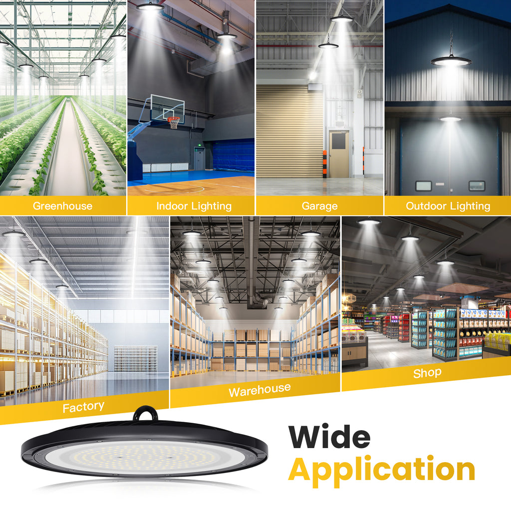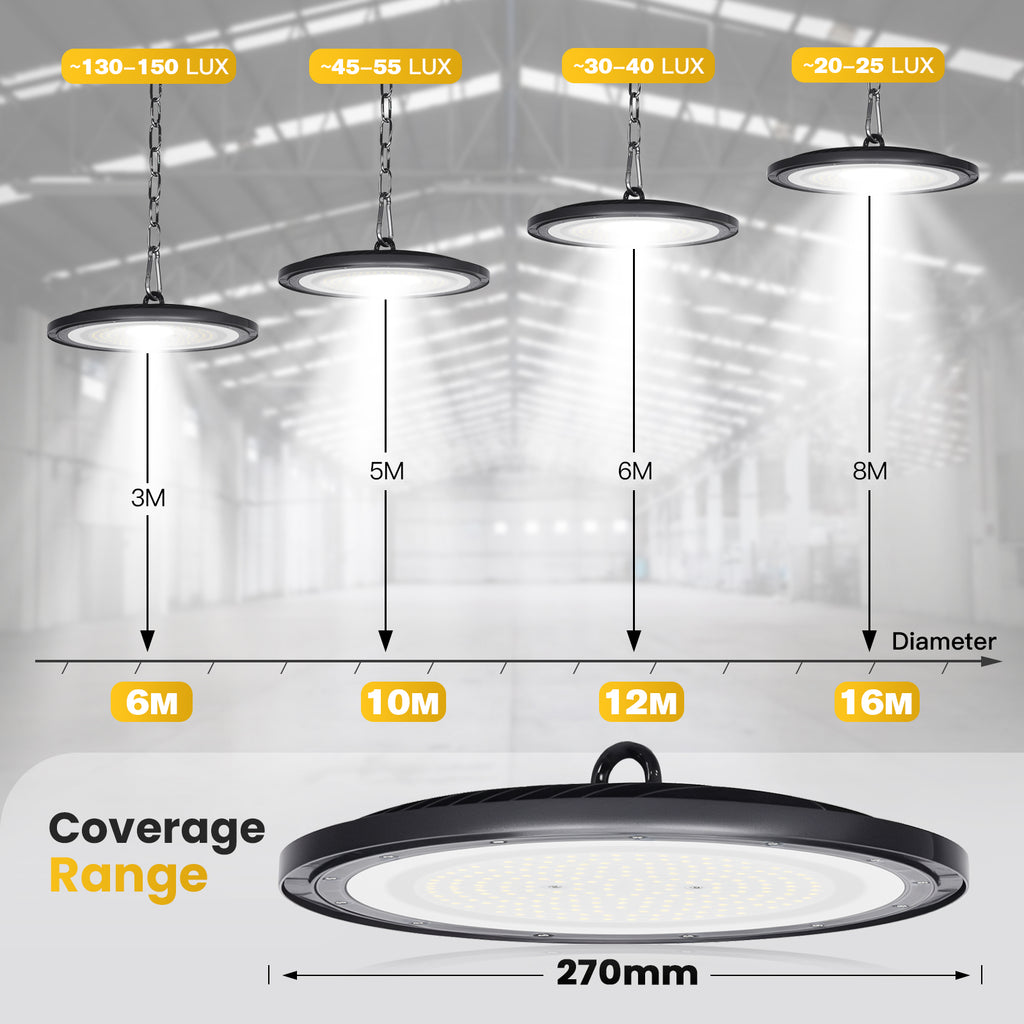 The UFO LED High Bay Light is engineered for energy efficiency, exceptional brightness, and long-term durability. Featuring advanced 3030 LED chips, it produces up to 30,000 lumens at a stunning 140LM/W efficiency.