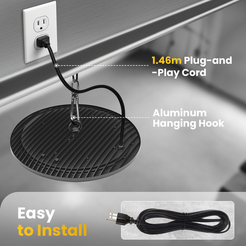 Installation is effortless—simply use the included adjustable chain and power cord to hang and plug in.