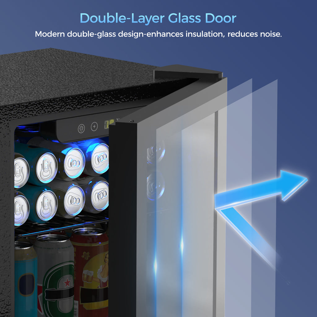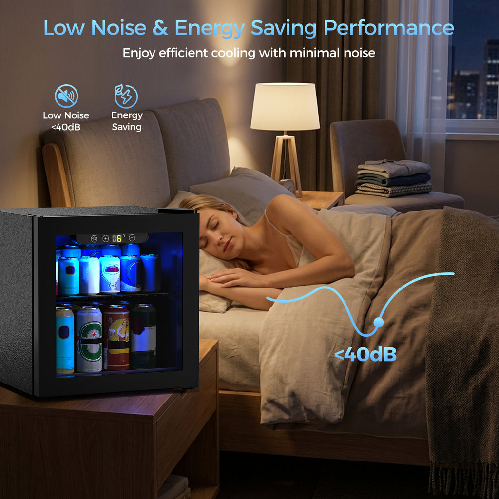 - Interior Blue LED Light & Stylish Design: Bright blue LED interior lighting clearly illuminates the contents without opening the door. Showcase beverages elegantly while keeping the mini fridge stylish and modern. Ideal for home bars, caves, or entertainment rooms.