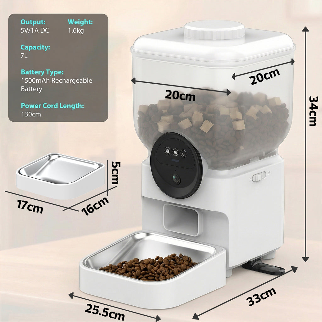 - 7L Large Capacity & Anti-Topple Design: Easily monitor remaining food levels through the half-transparent food bin. The 7L capacity suits cats and small to medium dogs, ensuring consistent feeding even during long days away. Equipped with non-slip silicone feet at the bottom, making it stable and preventing tipping, and suitable for placement on various surfaces.