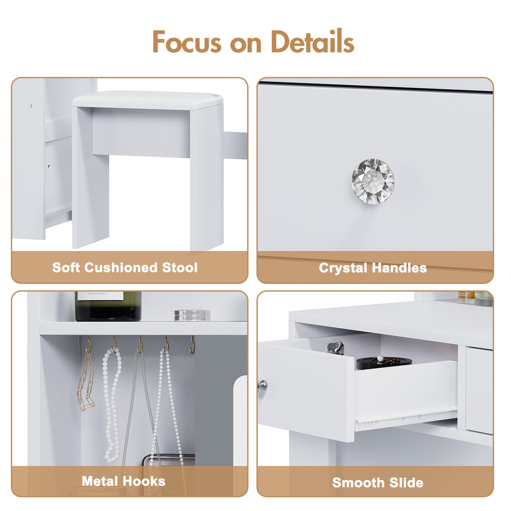 - Ideal Gift for Your Loved One: The elegant vanity table, adorned with refined crystal handles and a soft cushioned stool, brings romance and elegance to any room. It makes a beautiful surprise for your loved one on birthdays, Christmas, Halloween, Thanksgiving, or special anniversaries.