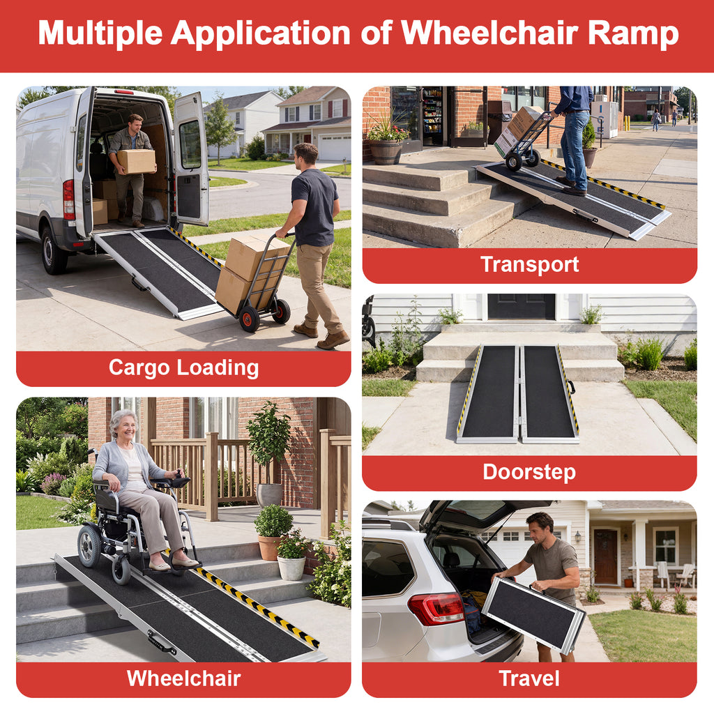 - Wide Applications: Portable threshold ramps can be used for various steps in homes or garages, vehicle loading, and transporting goods—for electric wheelchairs, strollers, prams, pets, walkers, or scooters.