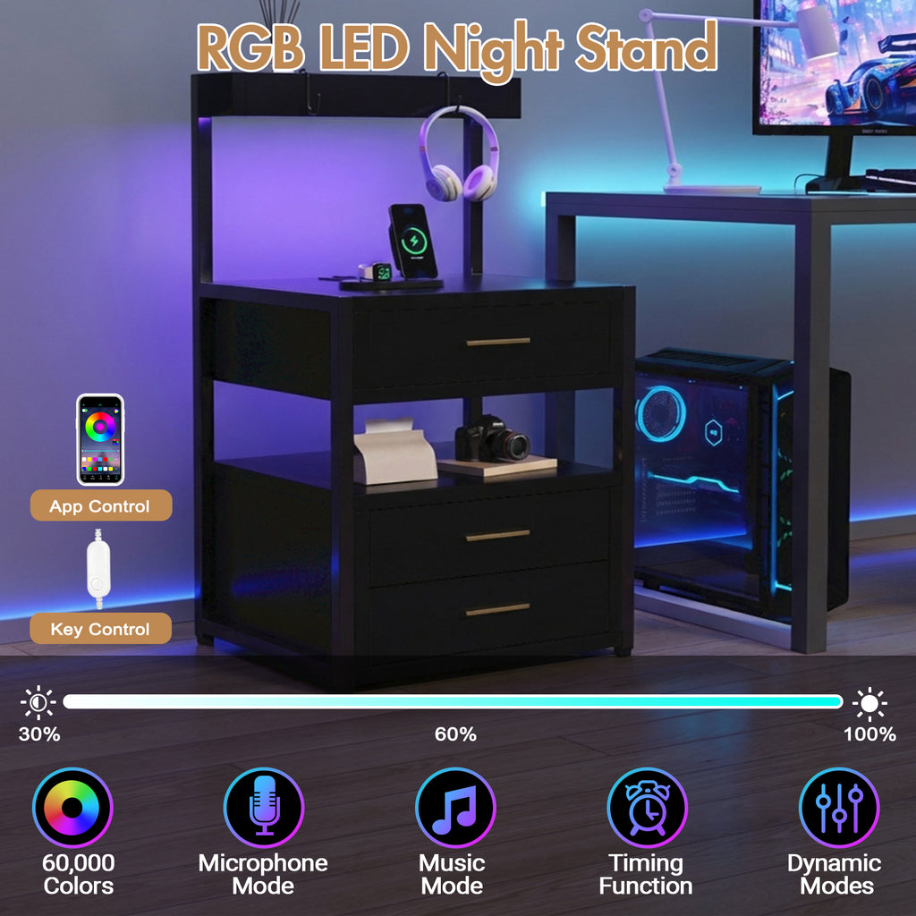 - LED Nightstand: This nightstand comes with multi-color RGB LED backlight, you can choose the light and mode according to needs and scenes. 60,000 RGB light colors, adjustable brightness, timing function, lights beat and flash in time with music. The beautiful LED lights will make your home look more modern and fashionable.