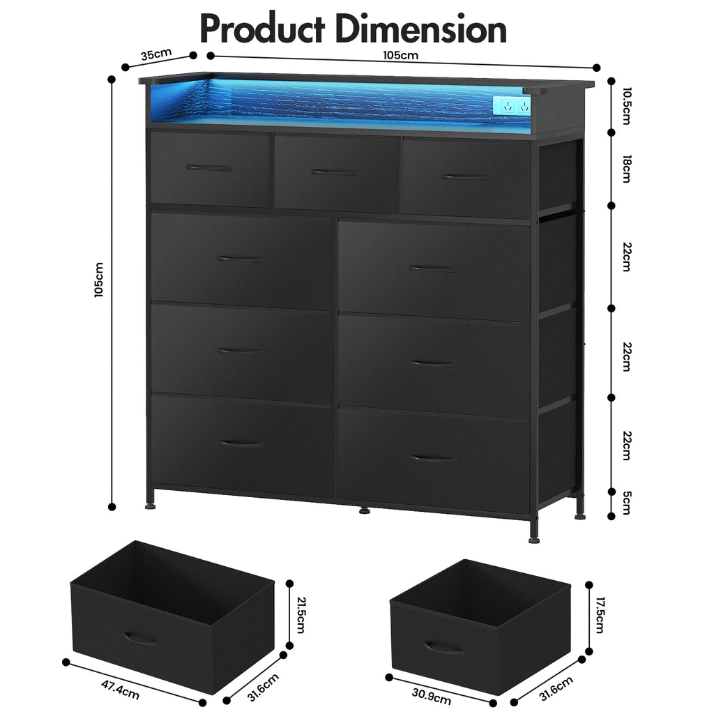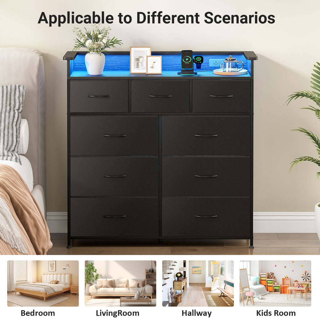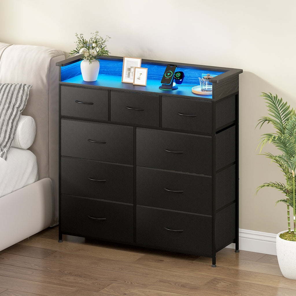 - LED Chest of 9 Drawers: The 9-drawer dresser is integrated with LED light, offering 60,000 colors and multiple dynamic and static modes. The LED light can be adjusted in color and brightness at any time through the APP or push-button switch. All kinds of LED lights add atmosphere to your room.