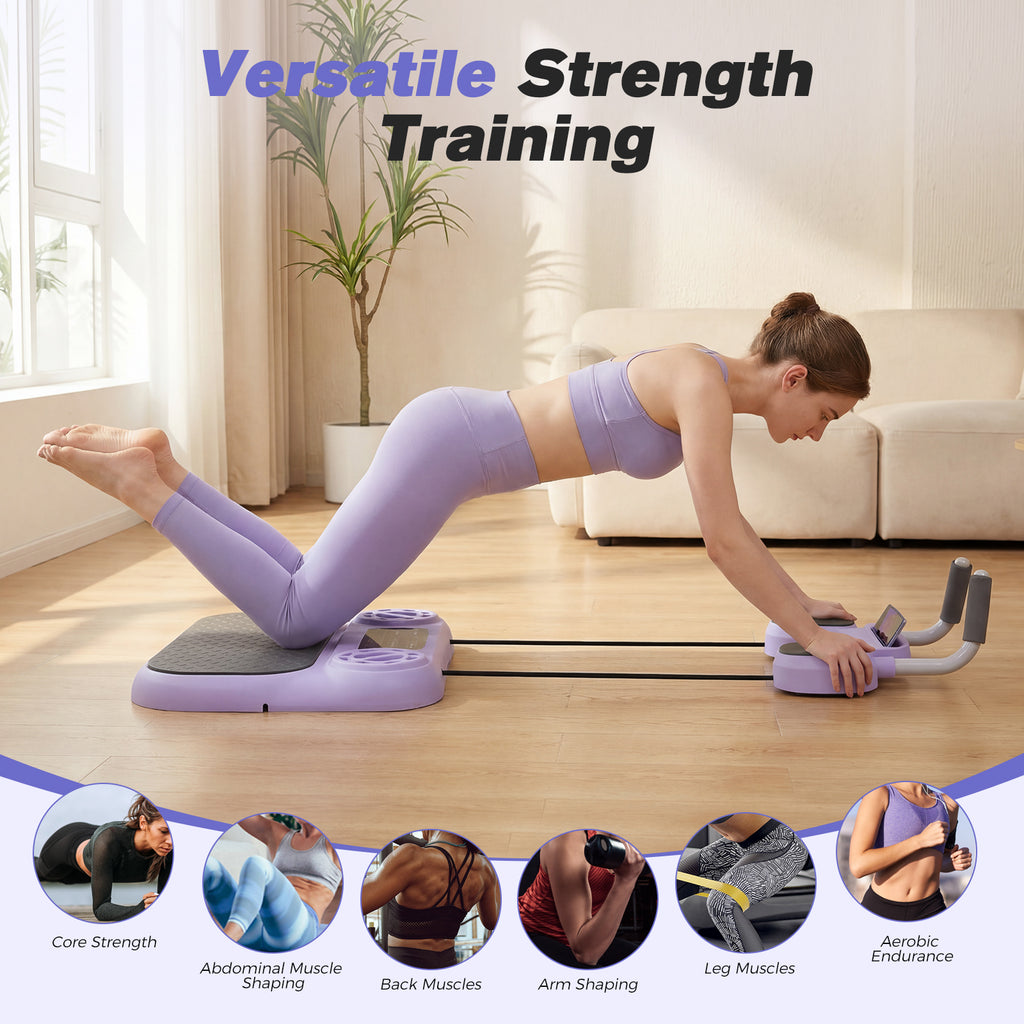 The Pilates Reformer Machine is a compact 6-in-1 training board that unlocks full-body, core and ab routines in tight spaces. Portable, easy to store and built for progressive resistance training.