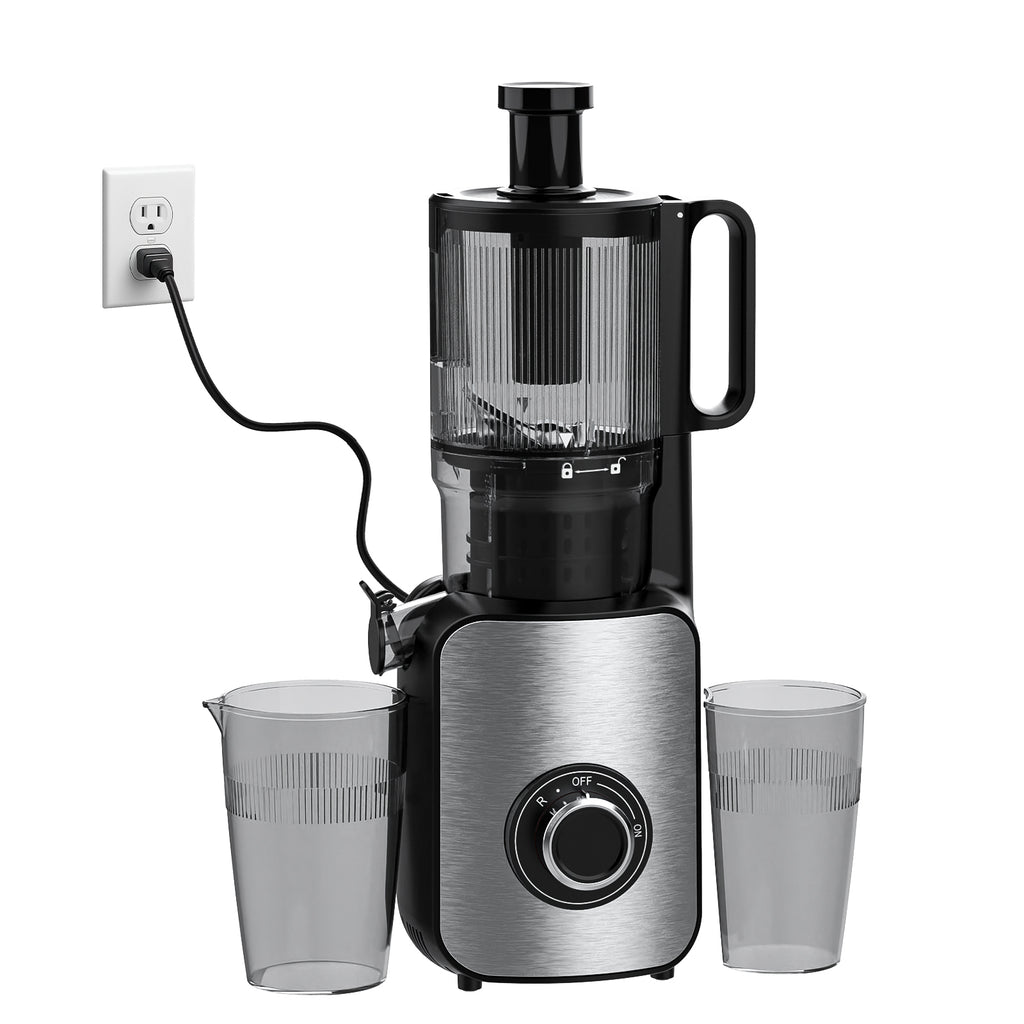- Low Noise & User-Friendly Details: Built with safety and comfort in mind—featuring overheat protection, a safety lock, anti-drip spout, and simple knob operation. Running at only 70dB, this low-noise juicer creates a calm kitchen environment without disturbing your morning routine.