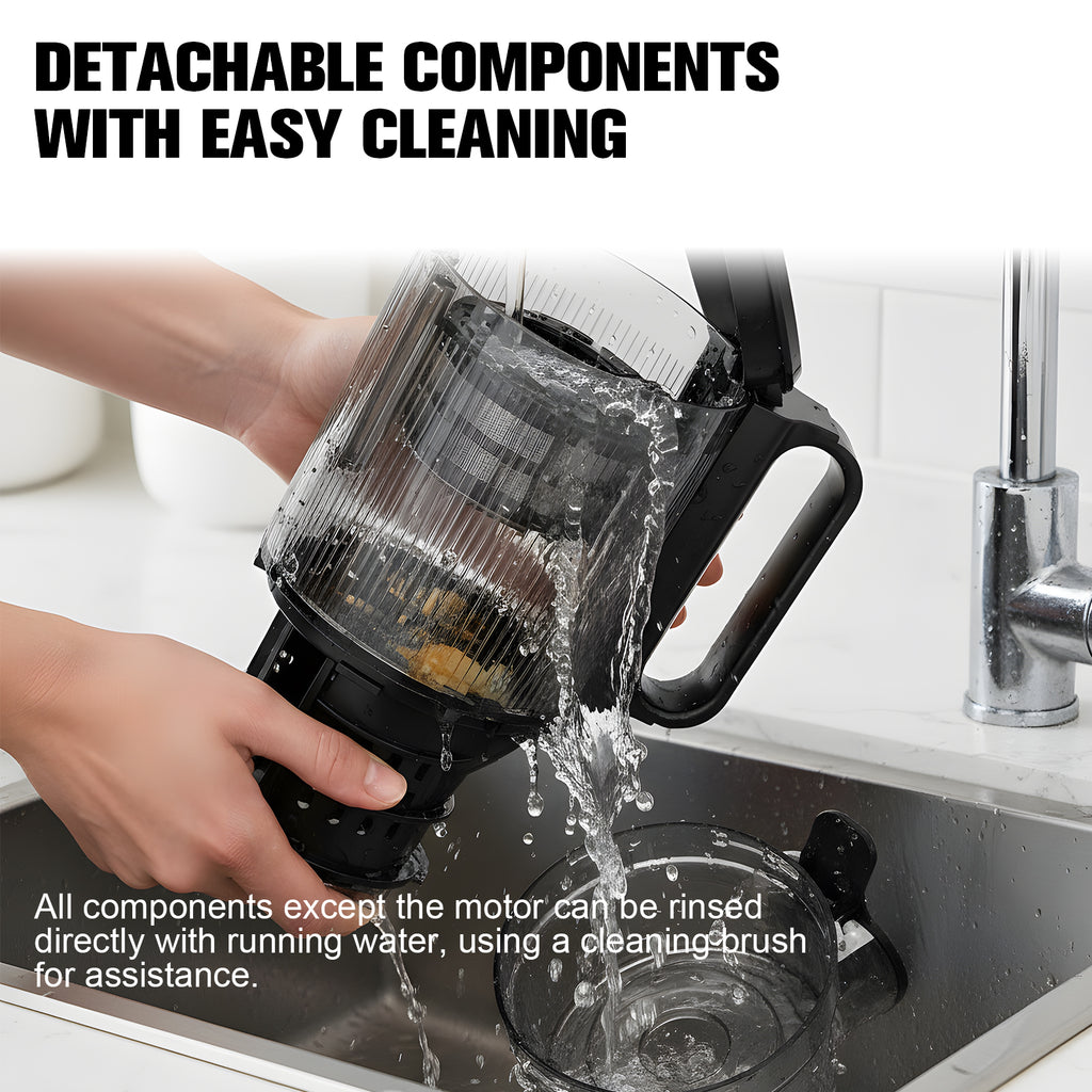 - Easy to Assemble & Clean: Engineered with a simple, intuitive structure, this masticating slow juicer can be assembled or taken apart in under 1 minute. All detachable parts are easy to rinse and come with a dedicated cleaning brush, making it an ideal easy-to-clean cold press juicer for daily use.