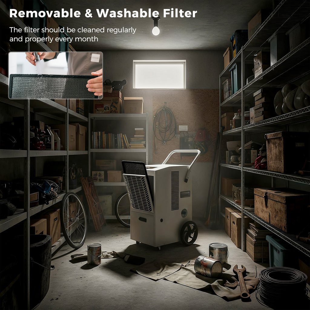 - Durable, Low-Noise & Energy-Saving: Built with a nylon mesh filter for easy cleaning, this dehumidifier operates at <54dB for quiet performance. With a standby power consumption <0.5W, it ensures long-lasting, energy-efficient use.