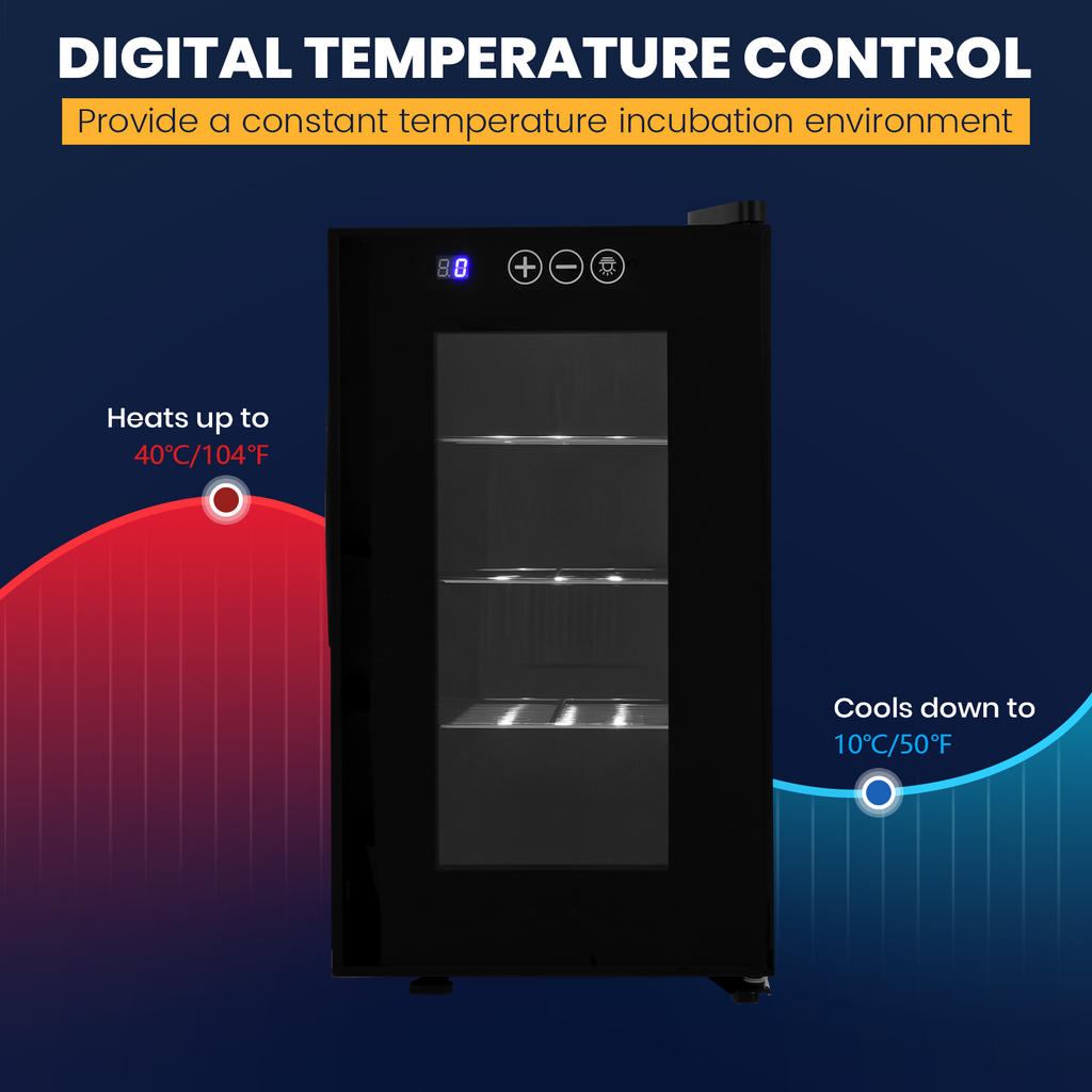 - Quiet, Safe & Convenient Operation: Features a low-noise system and a 1W LED light for easy observation. The digital control panel allows straightforward adjustments, the current temperature will be clearly displayed on the LED digital screen. Making the unit an ideal choice for reptile breeders, hobbyists, and educational settings.