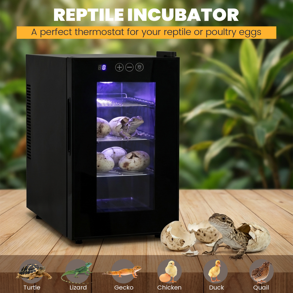 Advwin 23L Reptile Egg Incubator is designed to provide a stable, clean, and natural hatching environment for reptile and amphibian breeders. Constructed with a durable galvanized steel shell and a clear glass viewing door, it delivers both longevity and convenience. The precise 10–40°C heating and cooling system maintains consistent conditions essential for successful incubation. With low energy consumption, quiet operation, and a user-friendly digital interface, this incubator is suitable for gecko, snake, turtle, and lizard eggs, supporting both professional and hobbyist breeding projects.