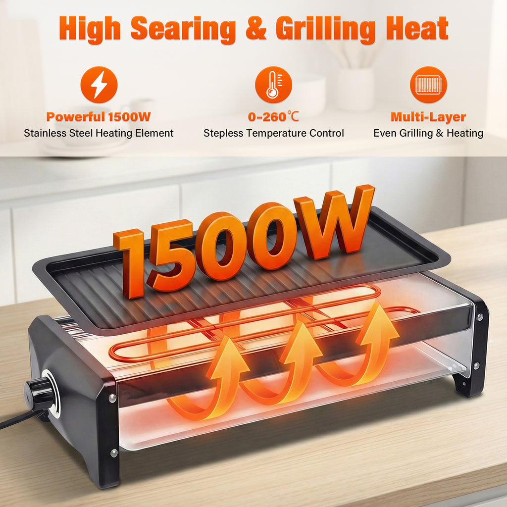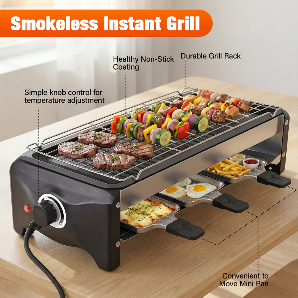 Enjoy the taste of a BBQ anytime, right in your kitchen or at the table. This compact and versatile grill makes cooking simple, fun, and smoke-free. Quick to heat, easy to clean, and safe to use, it’s perfect for weeknight dinners, family meals, or casual get-togethers with friends.