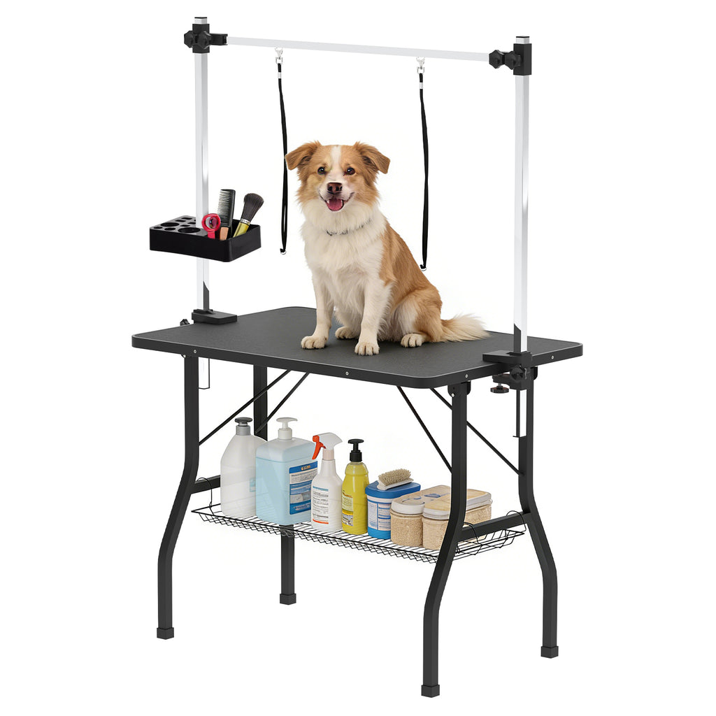 - Easy to clean: The foldable dog grooming table surface is a waterproof material, it is convenient to clean the table after the dog groom.And non-slip texture that keeps your pet standing stable. High-quality legs come with anti-slip rubber to add stability