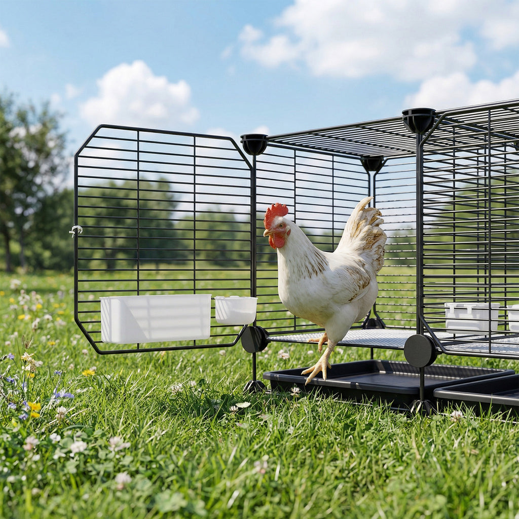 - Versatile for Various Small Animals: Whether you are raising chickens, ducks, quail, or geese, this iron cage is designed to meet your needs. Includes 6 white feeders and 6 white water cups, allowing even distribution and easy access for birds.