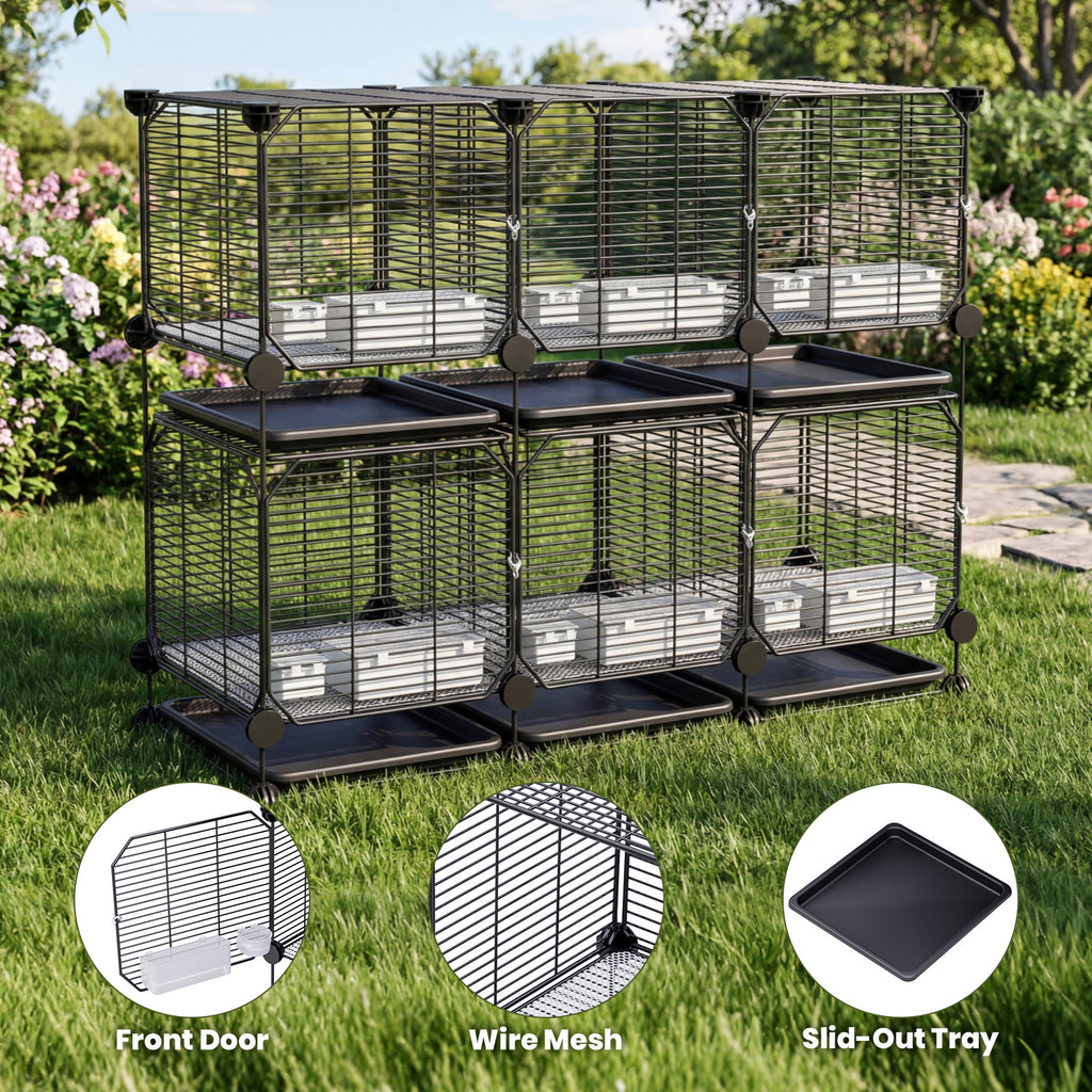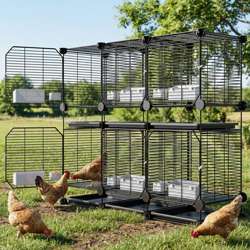 Advwin Modular Chicken Cage is designed for small poultry breeding, brooding, or temporary housing. Made from reinforced black iron wire mesh, it provides excellent ventilation, durability, and easy daily management. The stackable design saves space while offering a clean and organized environment for chicks or small birds.