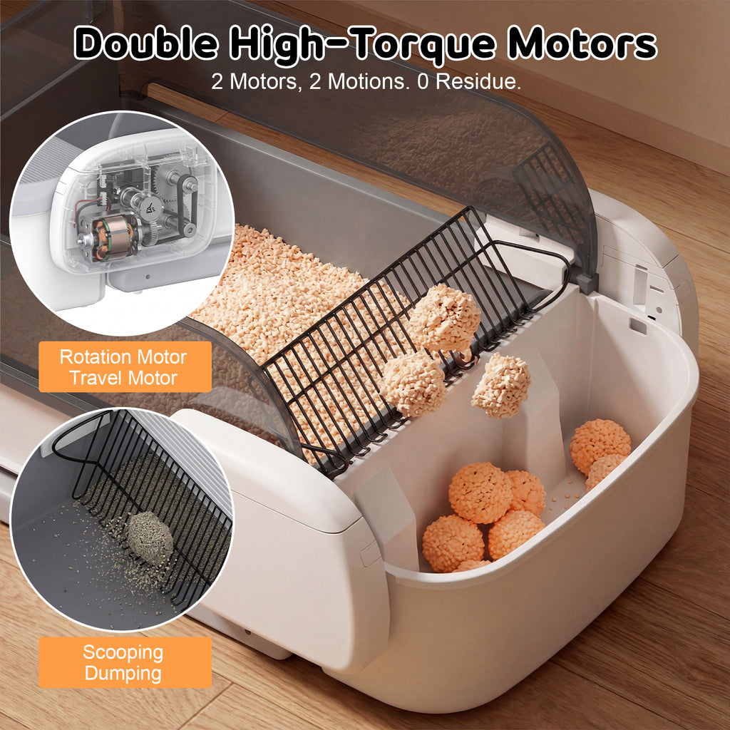 - Zero Risk of Pinching Cats: Unlike some rolling drum robot litter boxes, open top electric litter box has no pinch gap where cats could get pinched. Additionally, it is equipped with 4 highly sensitive gravity sensors that immediately stop operation upon detecting even the slightest weight. Now you can leave home with complete peace of mind, no longer worrying about your cat’s safety.
