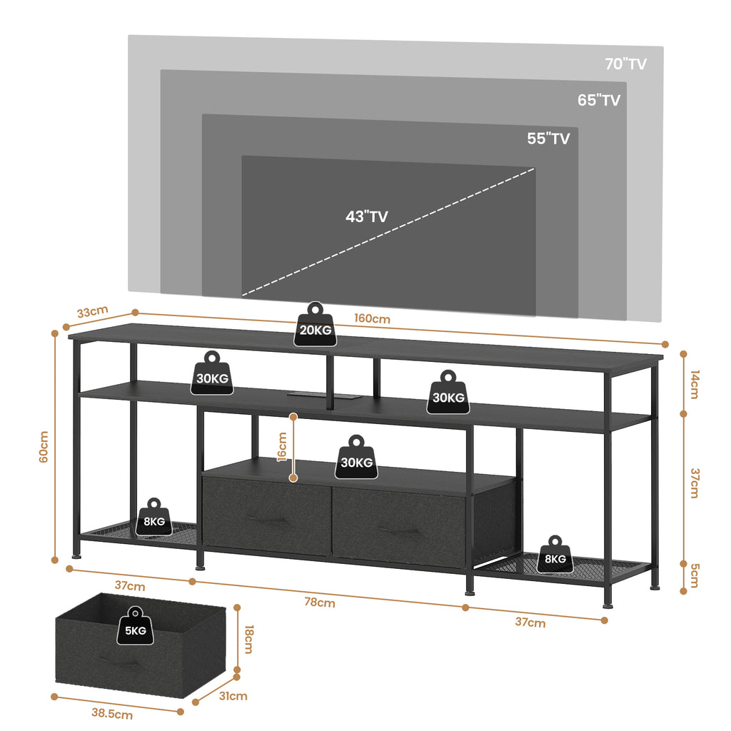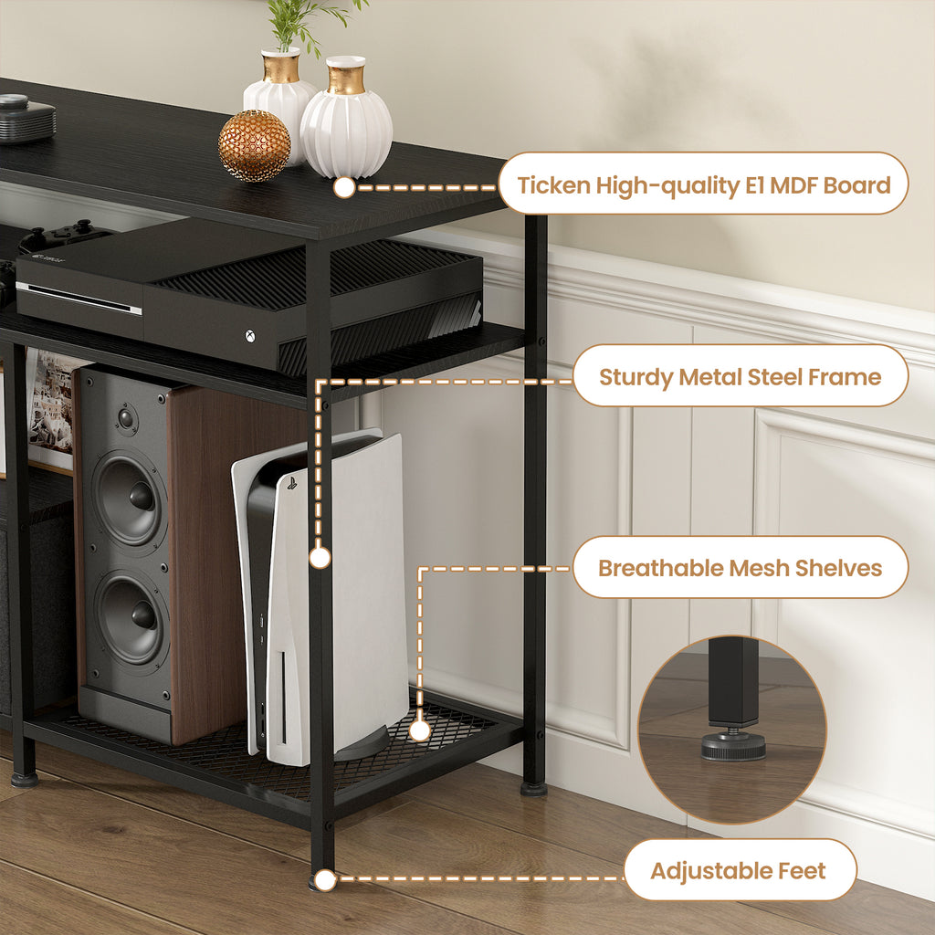 - Optimized Open Storage: Two removable drawers tidy away small items, while open and mesh shelves provide spacious, well-ventilated storage for consoles, speakers, and other media equipment. The design ensures easy cable access and prevents overheating.