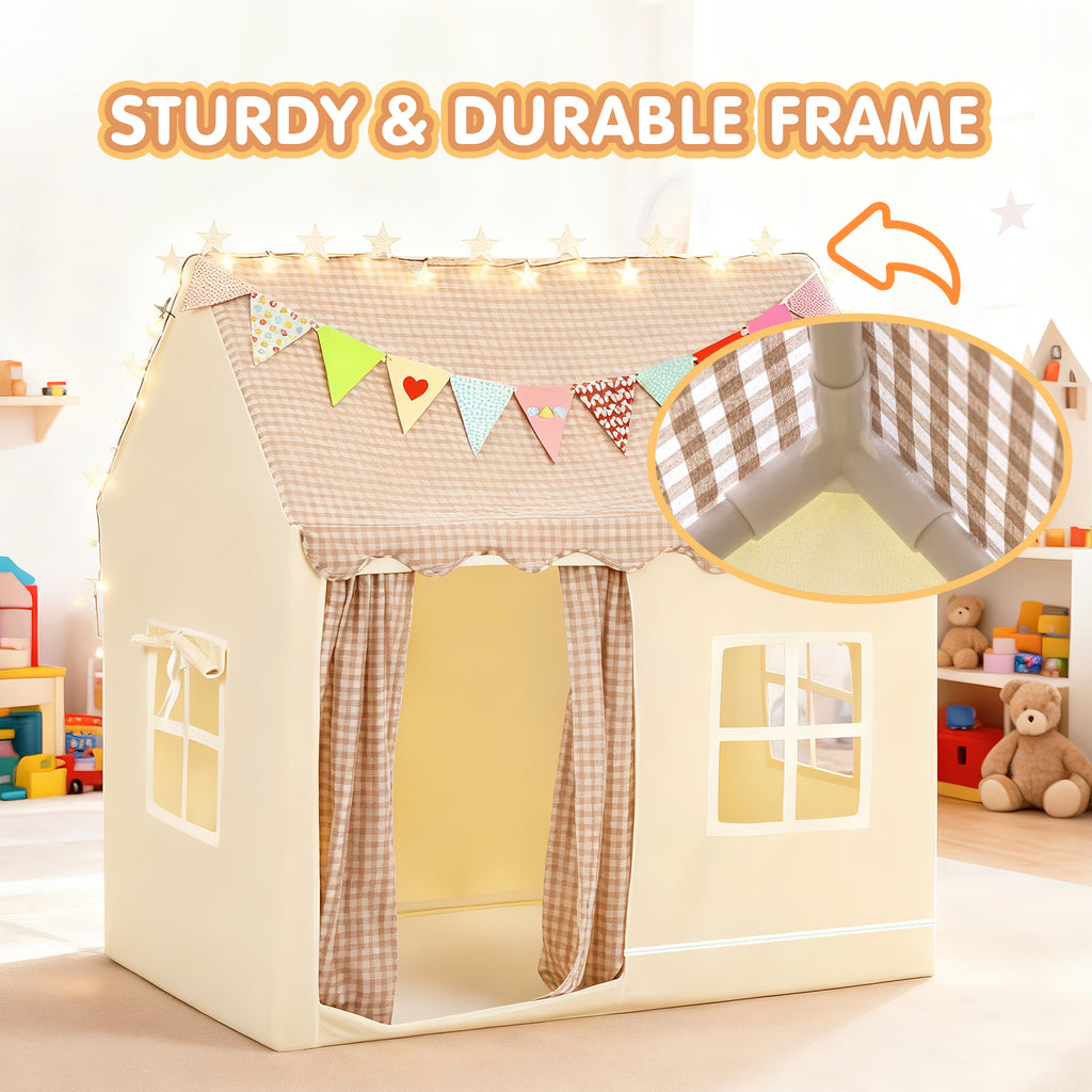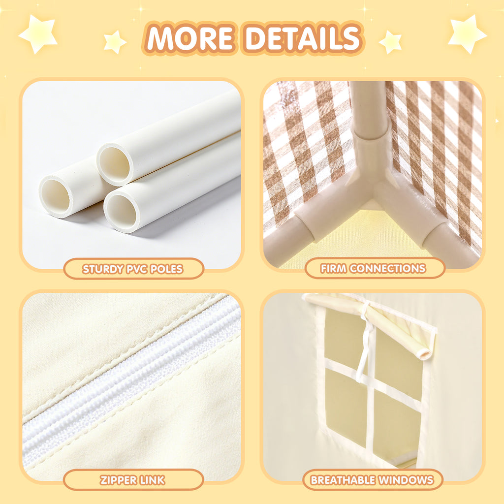 Safe and Stable Construction: Crafted from high-quality polyester fabric and reinforced with sturdy PVC poles, the tent’s durable triangular design is not only attractive but also enhances its stability. The sturdy frame ensures it remains secure, even during energetic play.