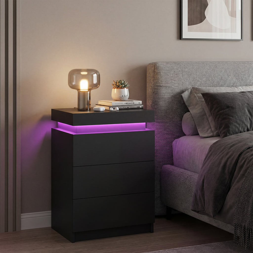 In addition to its impressive lighting features, the nightstand provides ample storage space. 3 spacious drawers offer plenty of room for keeping your essentials organized and within reach. No more cluttered bedside tables–everything can be neatly tucked away.