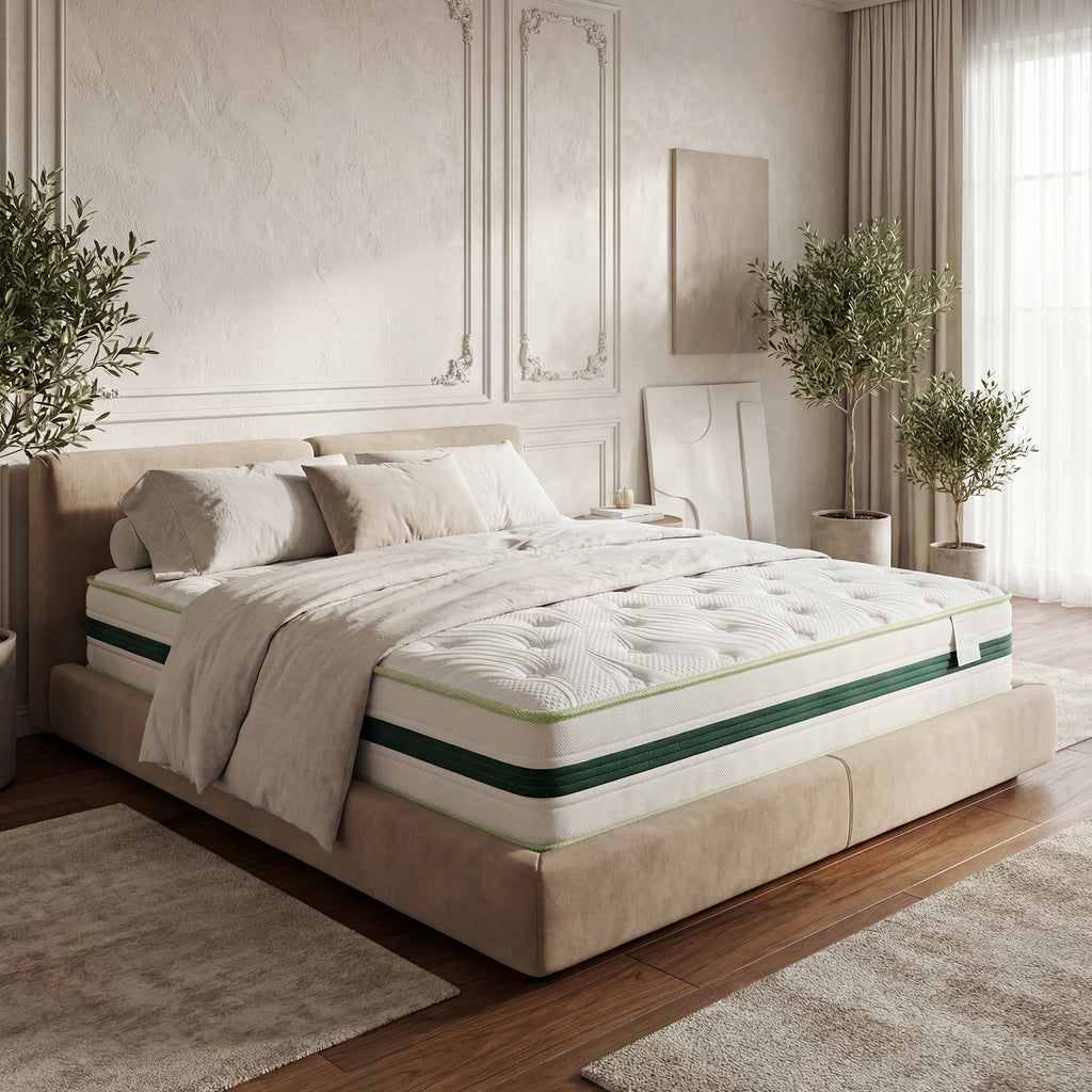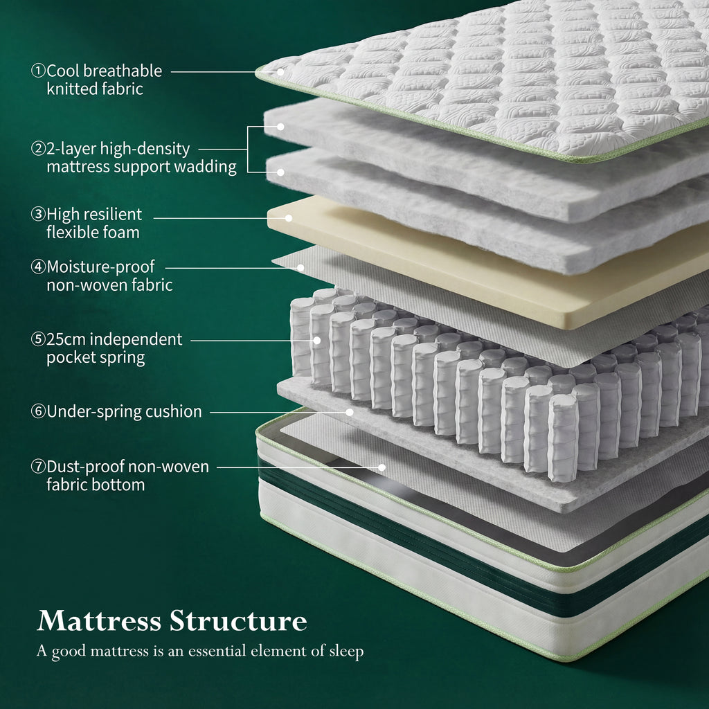 • Reinforced Edge Support Design: The mattress has upgraded pocket springs and added high-density foam around the edges for better stability. This prevents the edges from sagging or rolling during the night, giving you more usable sleeping space and protecting the mattress inside to last longer.