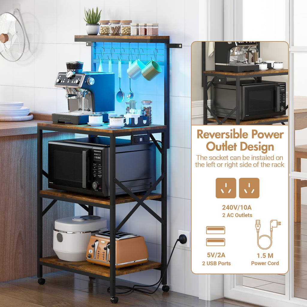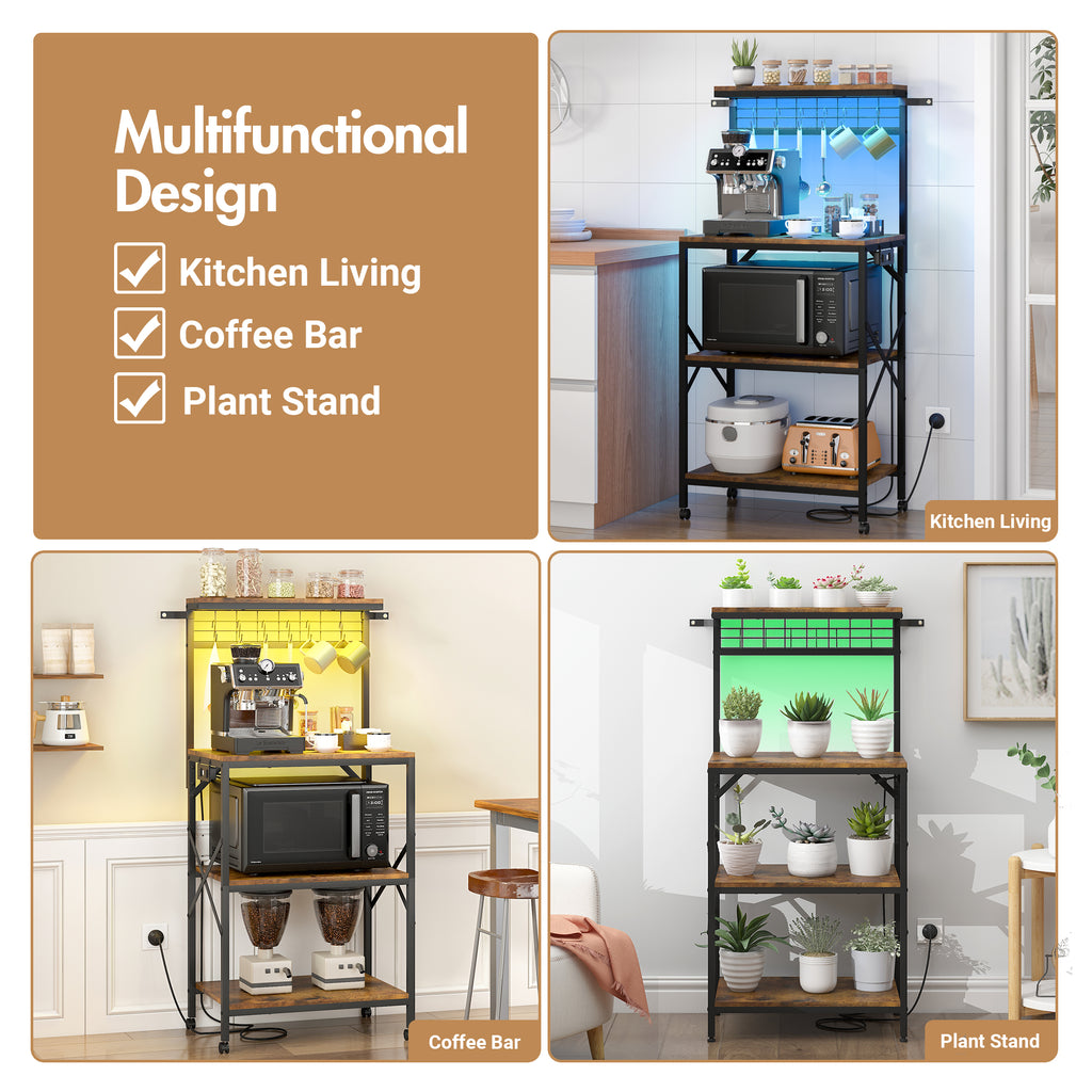 The kitchen bakers rack comes with 3 large shelves and a top shelf, perfect for storing microwave ovens, air fryers, coffee machines or pantry essentials. It also includes a smart RGB strip, adding personality and a charming visual effect to your kitchen.