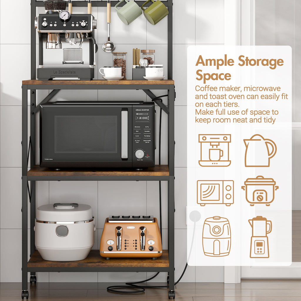 Upgrade your kitchen storage with the Advwin Bakers Rack – the perfect blend of sturdy storage and modern convenience.