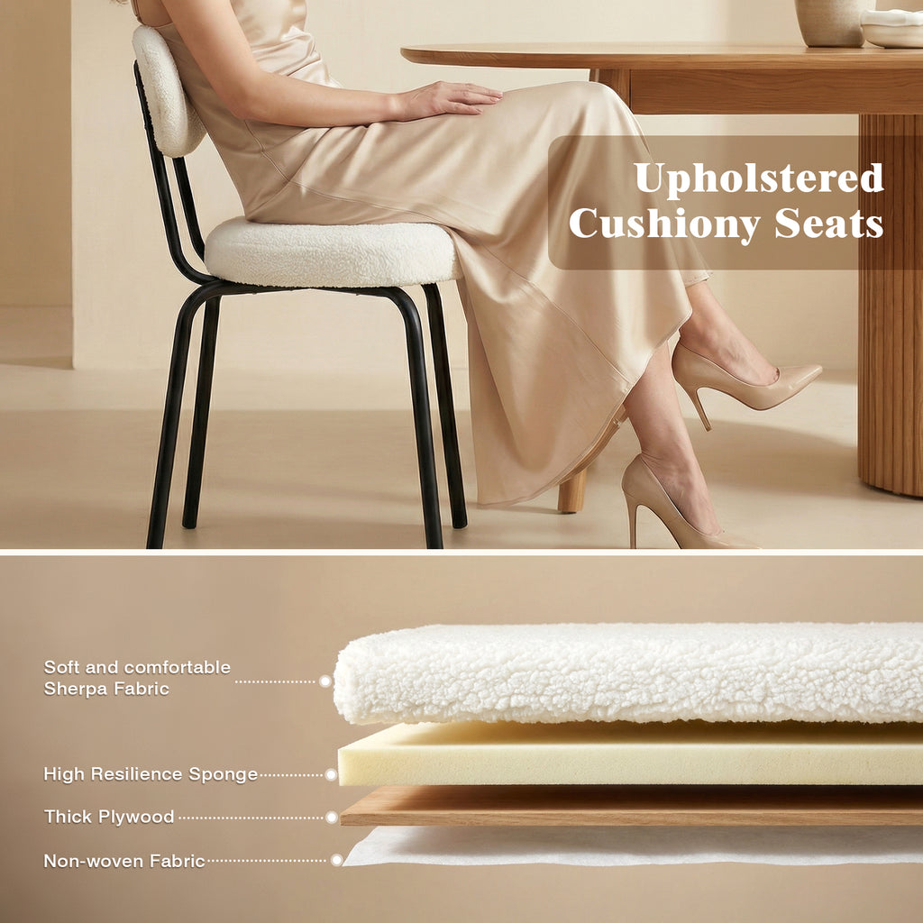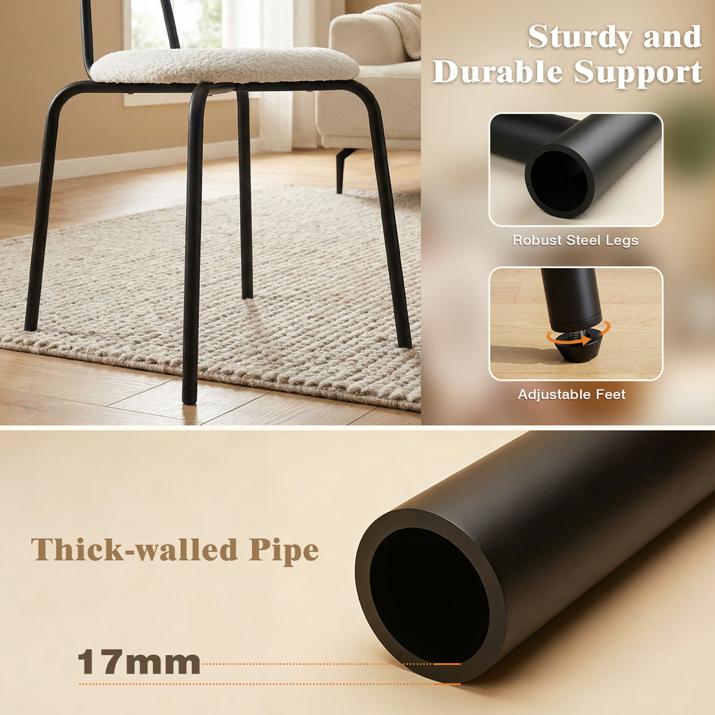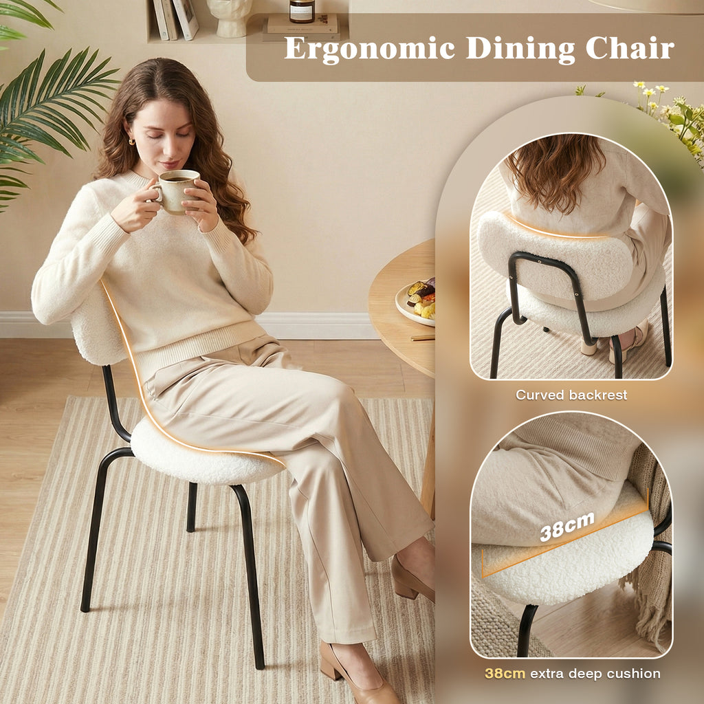 Advwin Elevate your home with this elegant dining chair, designed for both style and comfort. Upholstered in soft, premium teddy velvet, it offers a luxurious feel with durable, easy-clean practicality. The chair features a high-resilience foam backrest and a plush cushion for exceptional support, even during long meals. Sturdy matte black metal legs with adjustable, non-slip feet ensure stability on any floor. Its versatile, minimalist design fits seamlessly into your dining room, kitchen, office, or living area. With a simple assembly process, you can quickly enjoy this perfect blend of elegance and comfort.
