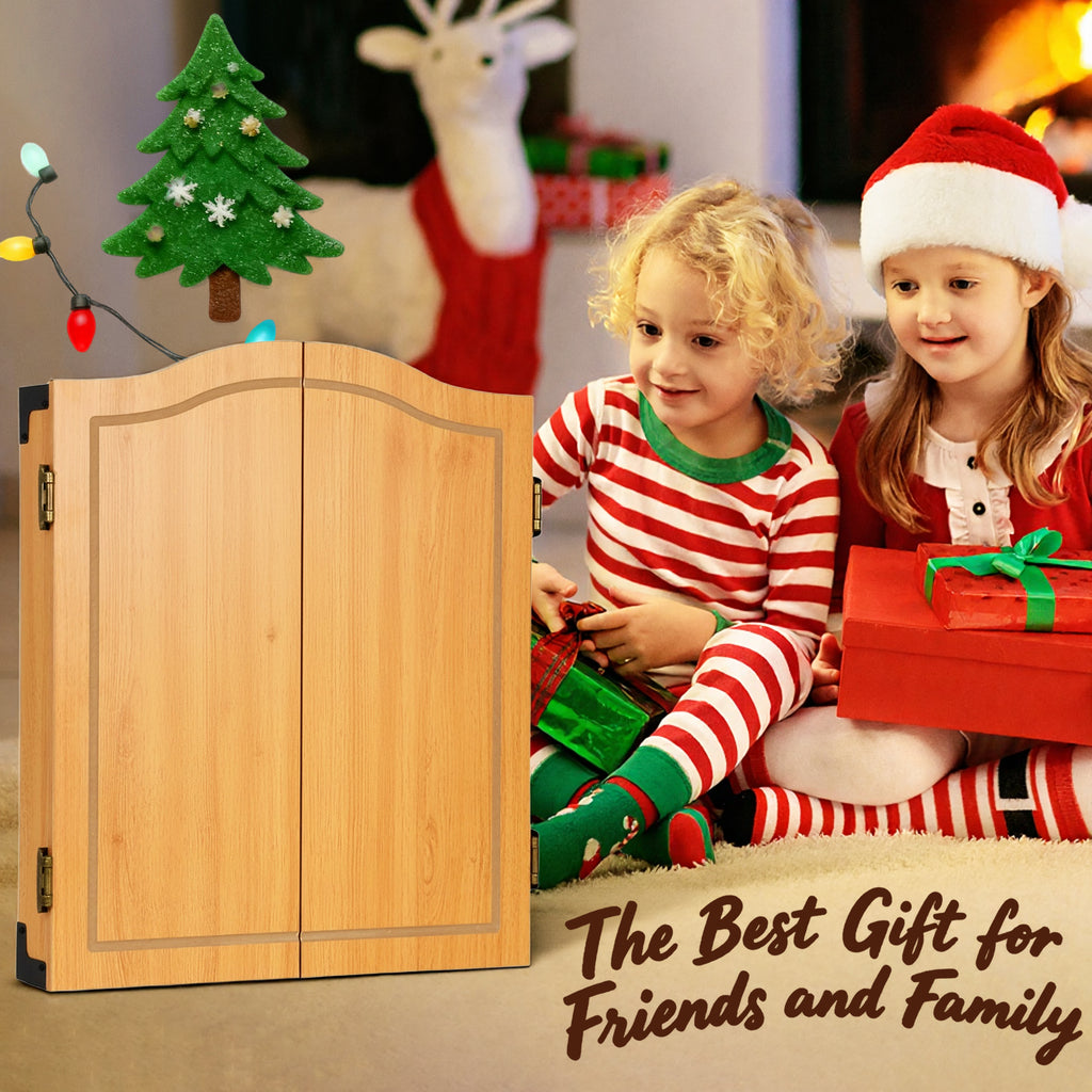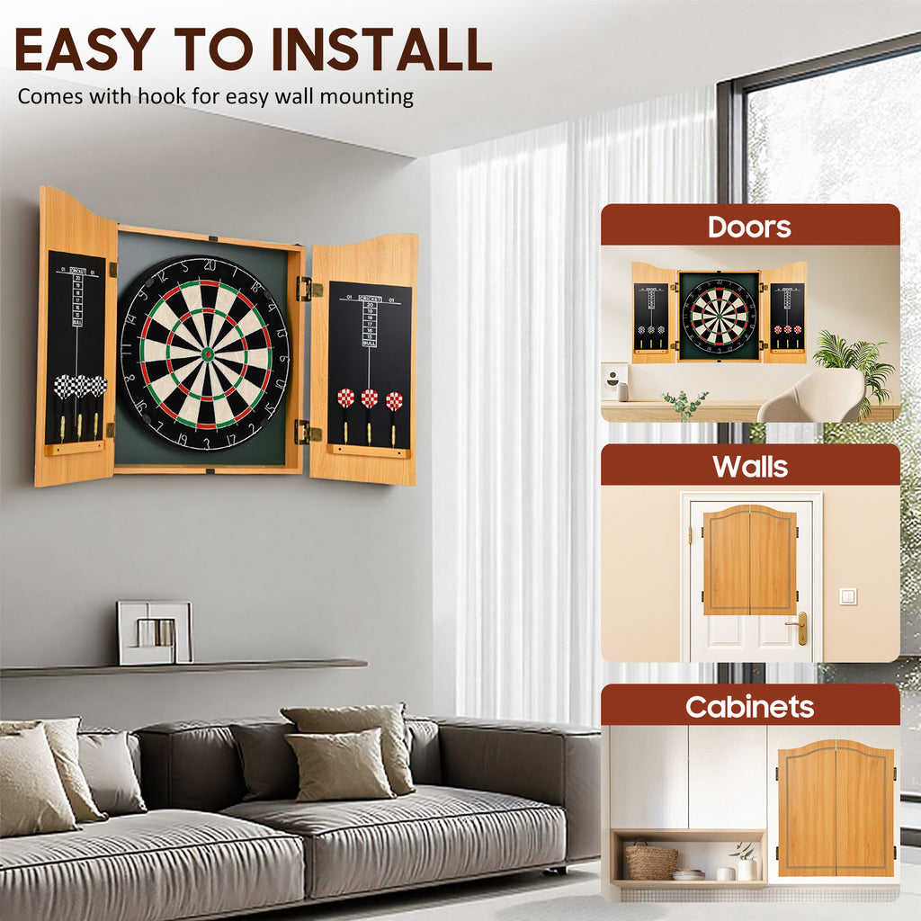 The Advwin Dartboard is a ready-to-play, gift-ready cabinet set built for relaxed social play. With an 18” (455mm) wide dartboard surface, an inside chalk scoreboard and eraser, and a storage cabinet that holds 6 steel-tip darts and accessories, it’s easy to mount on a wall or door and start playing.