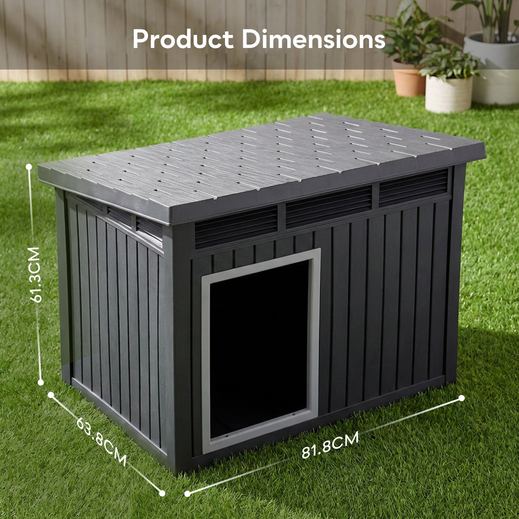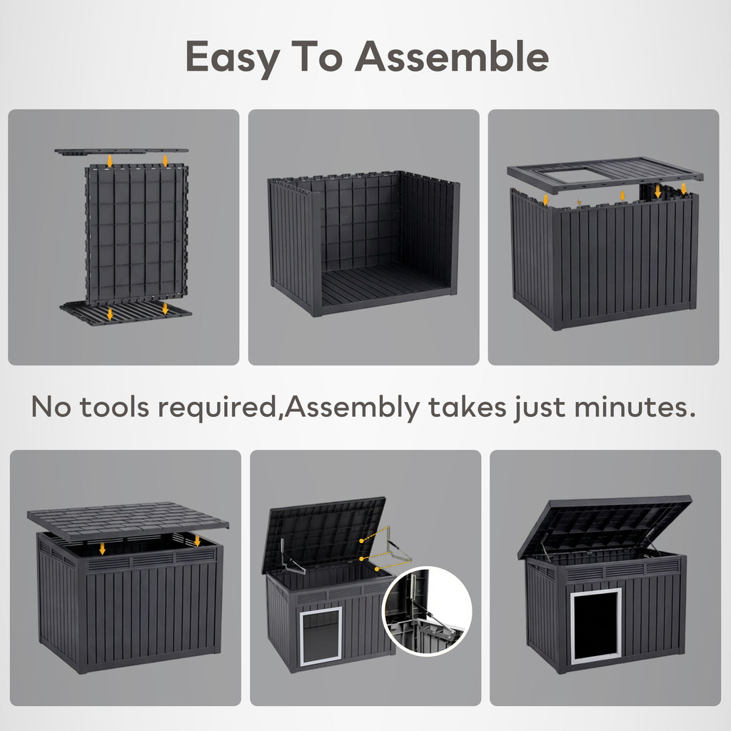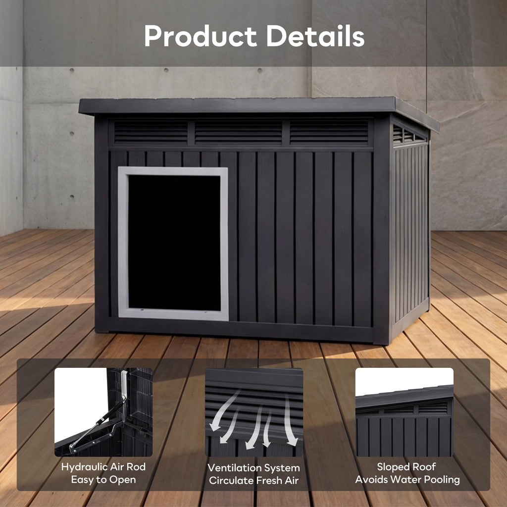 - Easy-to-Clean & Low Maintenance: The gas-strut-assisted roof opens effortlessly, allowing quick and hassle-free cleaning to maintain a hygienic living environment for your pet. Louvered ventilation panels around the structure ensure optimal airflow, letting your furry friend enjoy fresh air while keeping rain out.