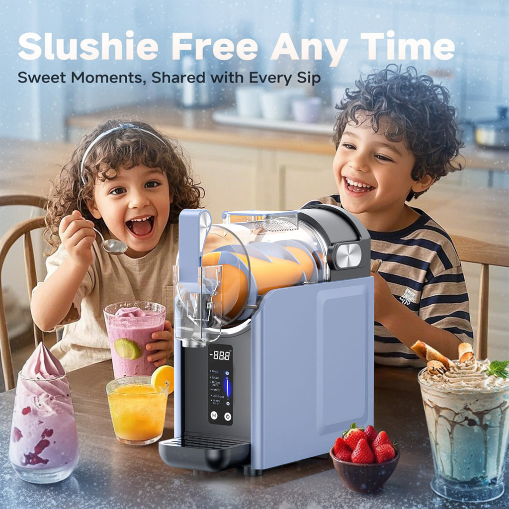 With 0.5℃ precise ice hardness control, you can adjust the texture of your drinks from smooth frappes to firm crushed ice. The 220W ice crusher & shaver system delivers fast performance, producing slush in just 15–45 minutes, while the 2L capacity is perfect for family use, parties, BBQs, cafés, bars and commercial catering.
